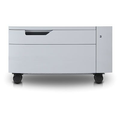 El alimentador de papel de 500 hojas HP y el armario incrementan la flexibilidad proporcionando una bandeja adicional de 500 hojas y permitiendo adjuntar un dispositivo de salida.