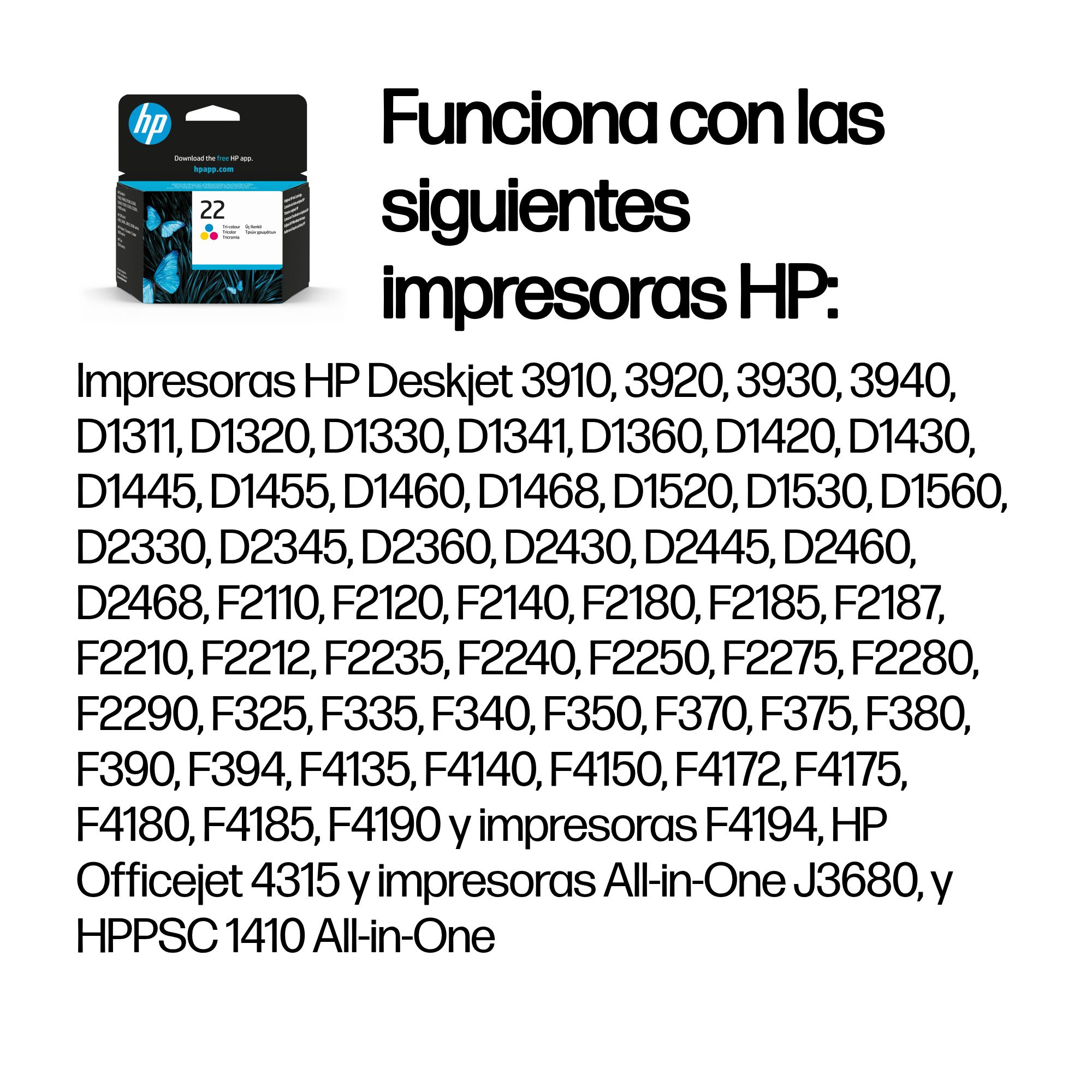 | Compatibilidad | Los cartuchos de Tinta HP 22 funcionan con: |