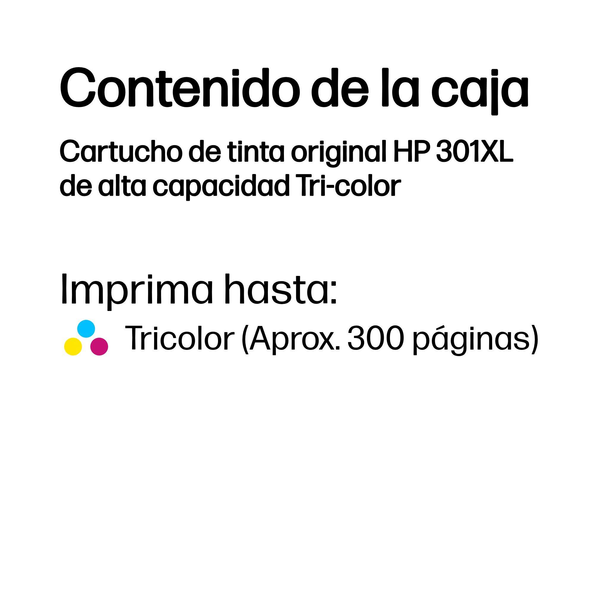 HP Cartucho de tinta original 301XL de alta capacidad Tri-color