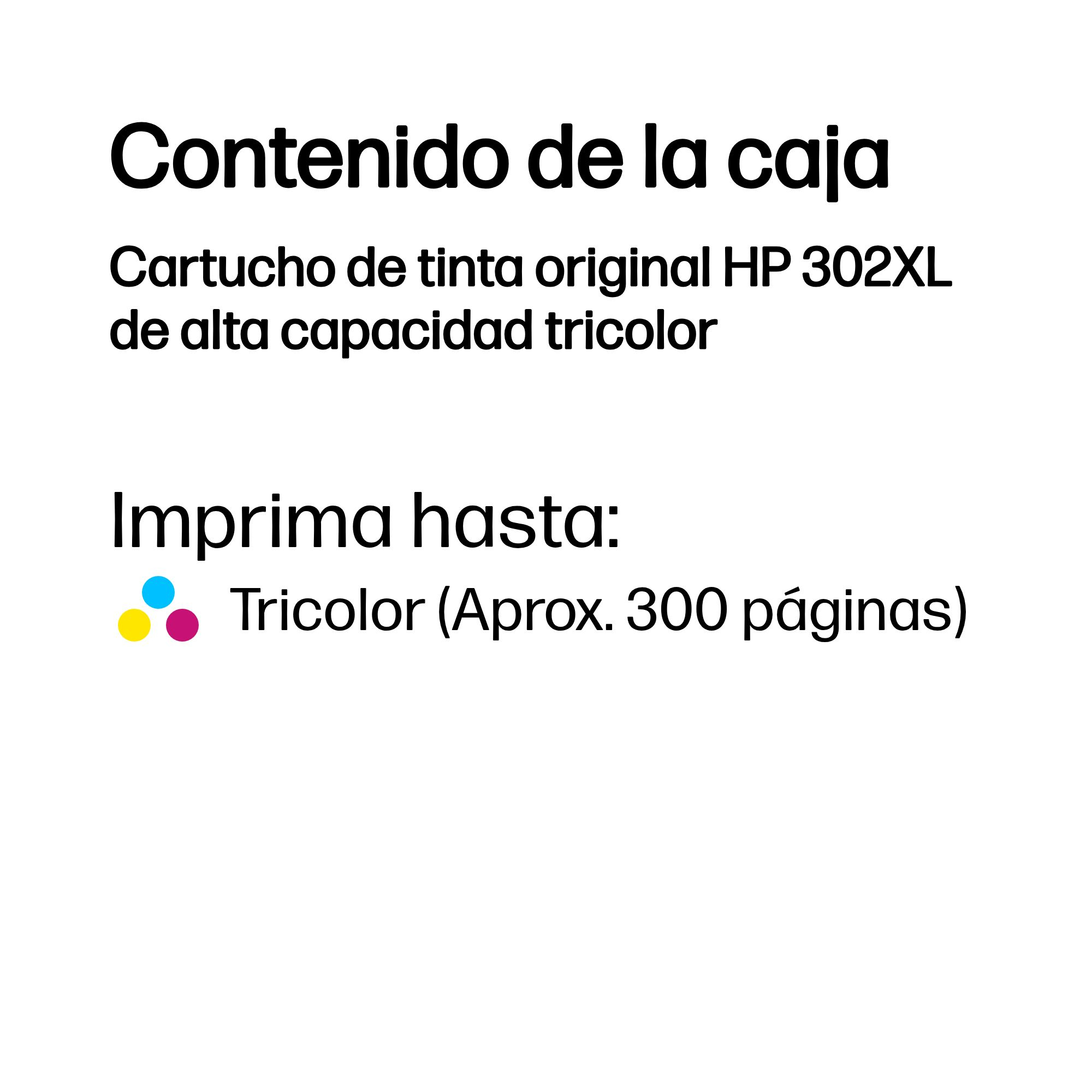 HP Cartucho de tinta original 302XL de alta capacidad tricolor