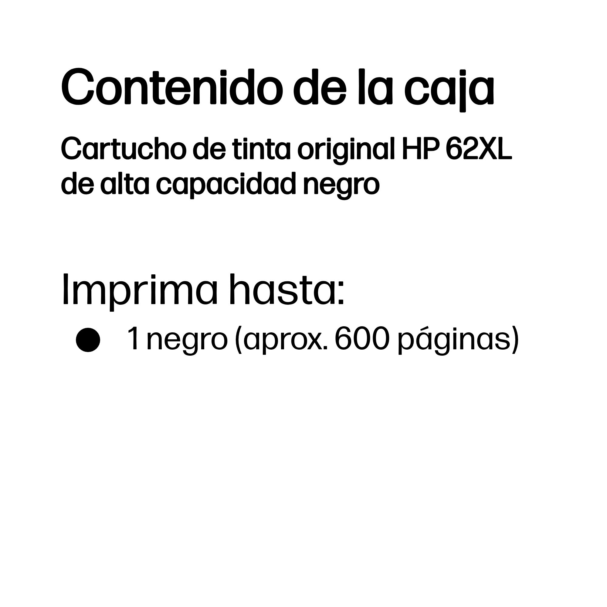 HP Cartucho de tinta original 62XL de alta capacidad negro