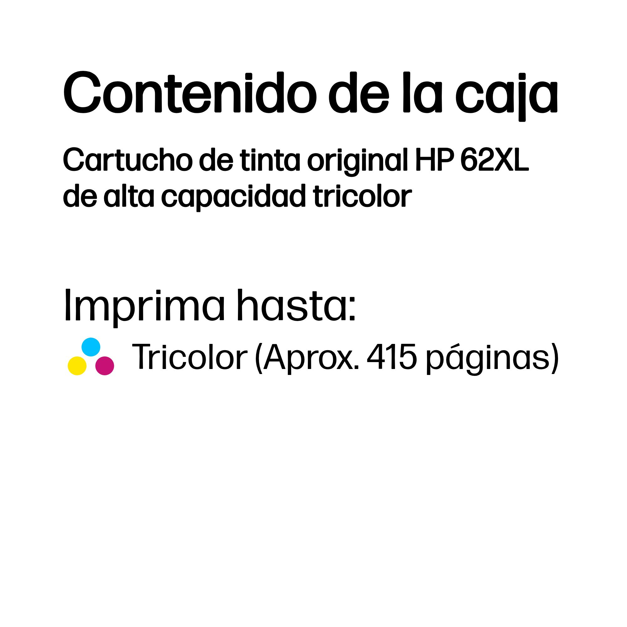 HP Cartucho de tinta original 62XL de alta capacidad tricolor