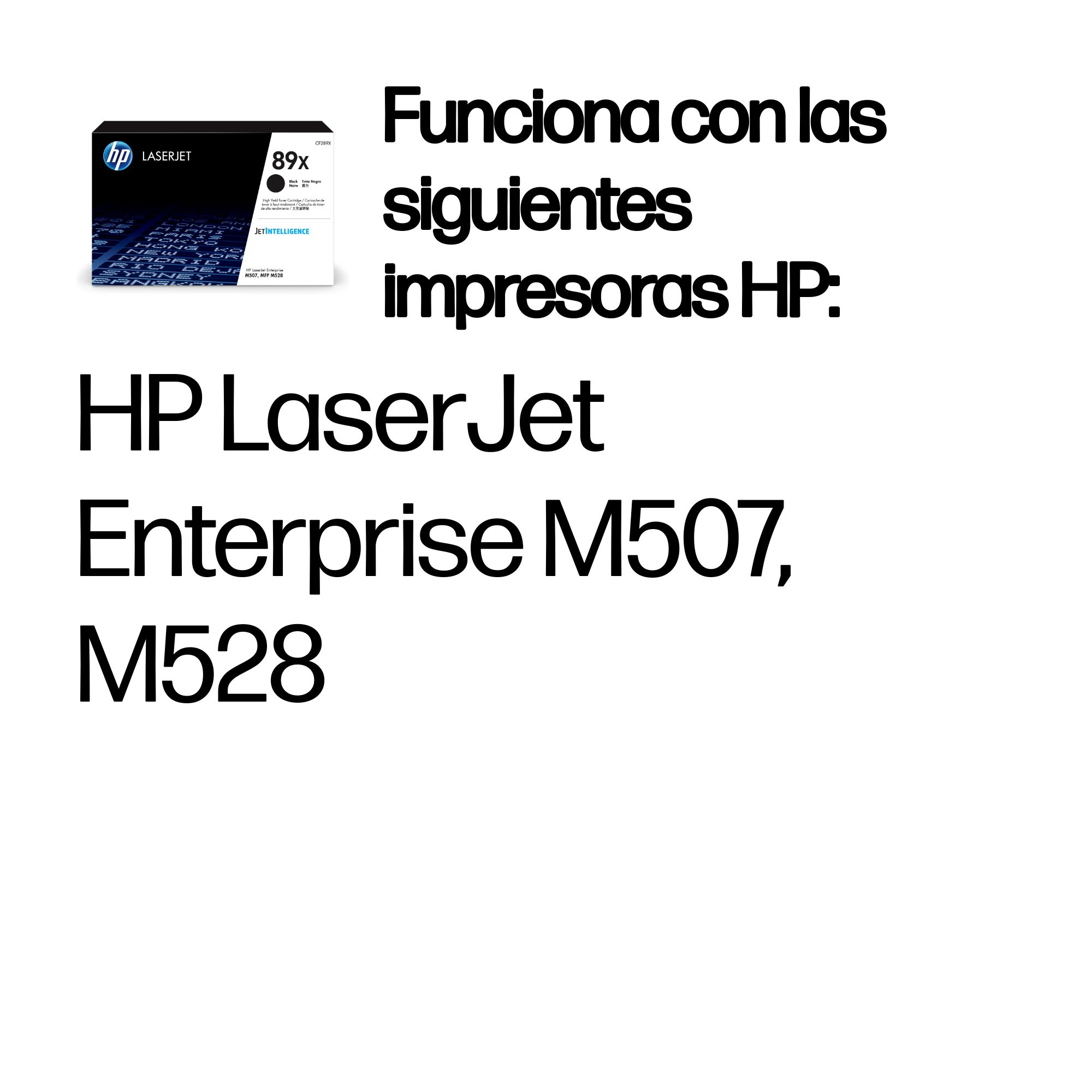 | Compatibilidad | Los cartuchos de Tóner HP 89 funcionan con: HP LaserJet Enterprise M507, M528 |