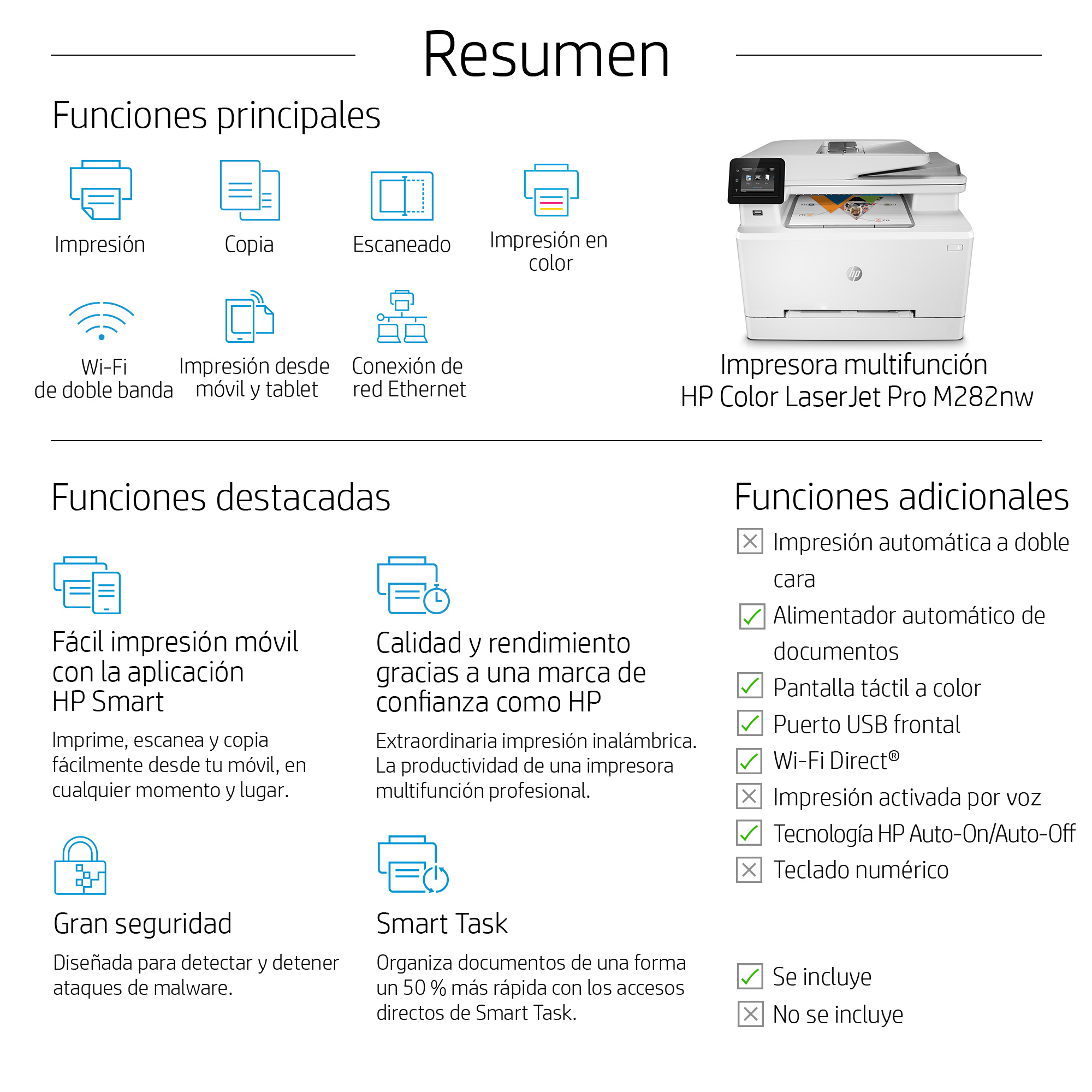 HP Color LaserJet Pro LaserJet Pro M282nw Inalámbrico Multifunction Color Impresora, Fotocopiadora, escáner; Dúplex
