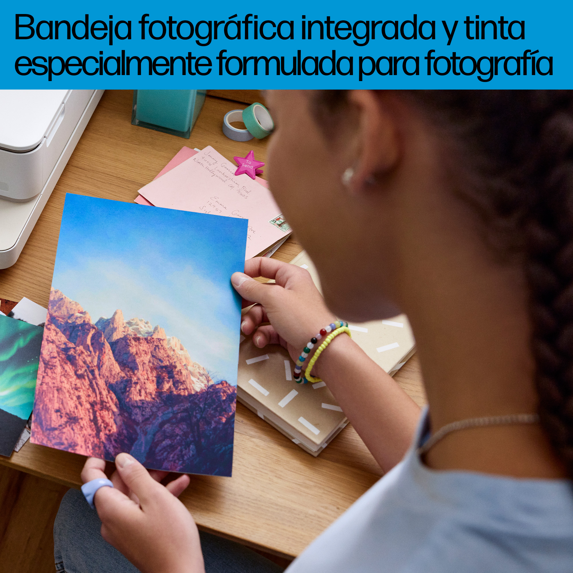 Añade un mensaje personalizado con la impresión fotográfica de 10 x 15 cm (4 x 6 pulg.) a doble cara desde la aplicación HP Smart.[2]