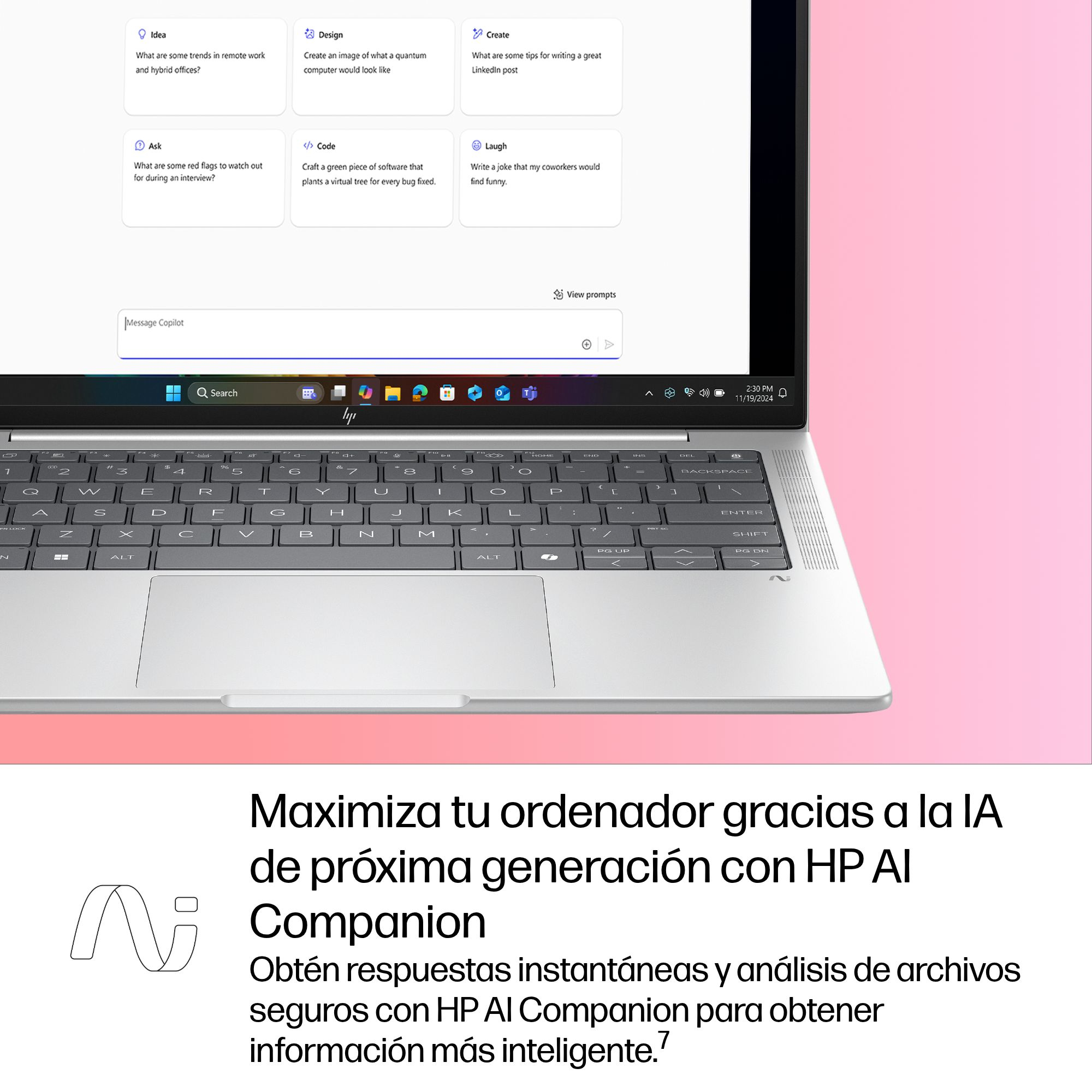 Trabaja desde cualquier lugar sin que esto afecte al rendimiento gracias a Windows 11 y a la tecnología de colaboración, seguridad y conectividad de HP. Resume y reescribe contenido, obtén recomendaciones de contenido relevantes y mantente organizado con Microsoft Copilot.[6]