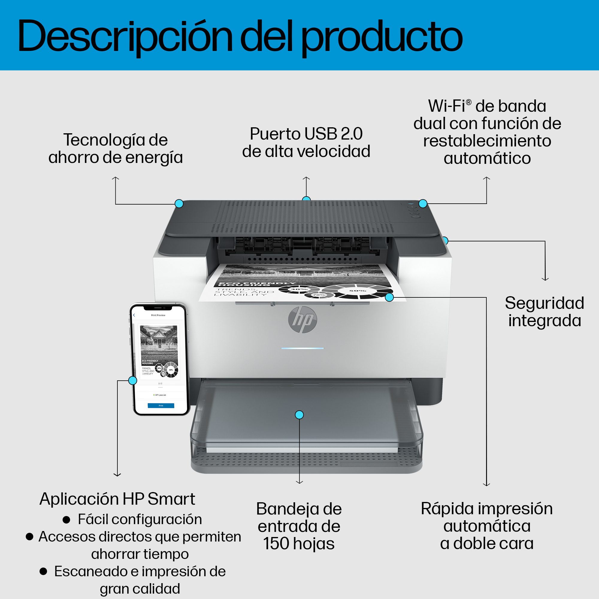 Puedes colocar esta impresora LaserJet en casi cualquier parte al ser tan pequeña y compacta. Completa rápidamente los proyectos con una impresora que cabe en casi cualquier parte.