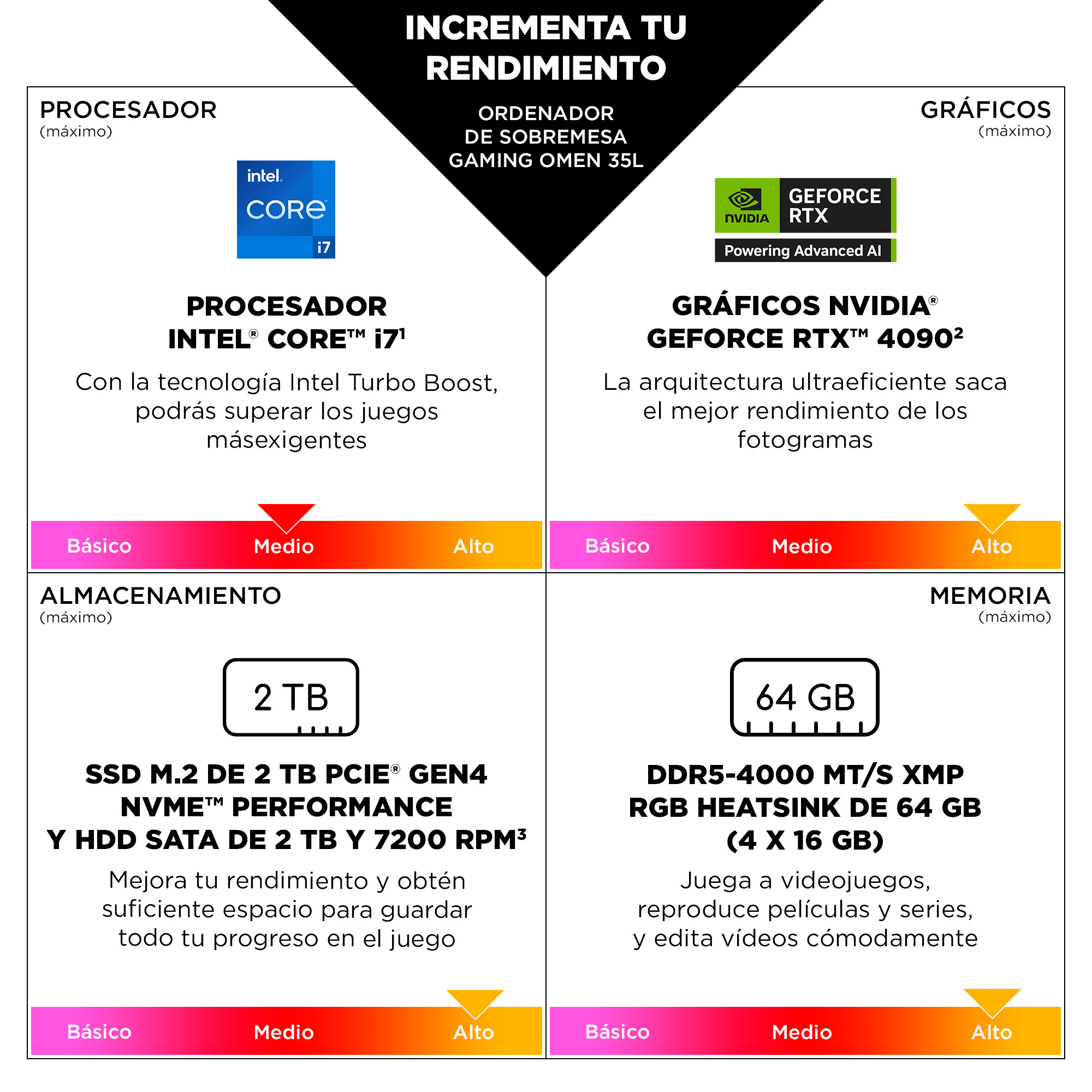 Conviértete en todo aquello que desees ser, dentro y fuera del juego, con un rendimiento optimizado y nuevas funciones. Juega y trabaja de una forma más intensa e inteligente con los procesadores Intel Core.<sup>[6]</sup>