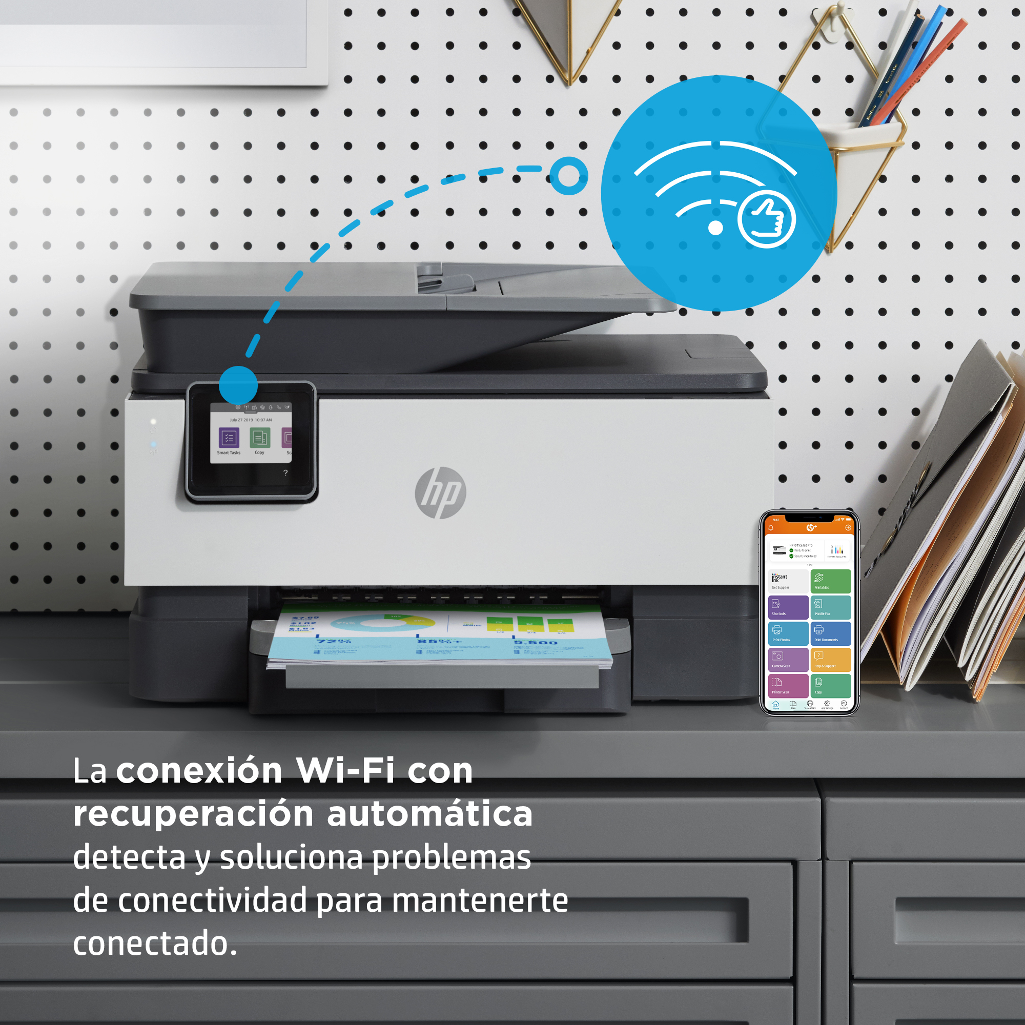 Una impresora HP+ está preparada cuando tú lo estás y es más segura y productiva que nunca.<sup>[10]</sup><sup>[9]</sup>
