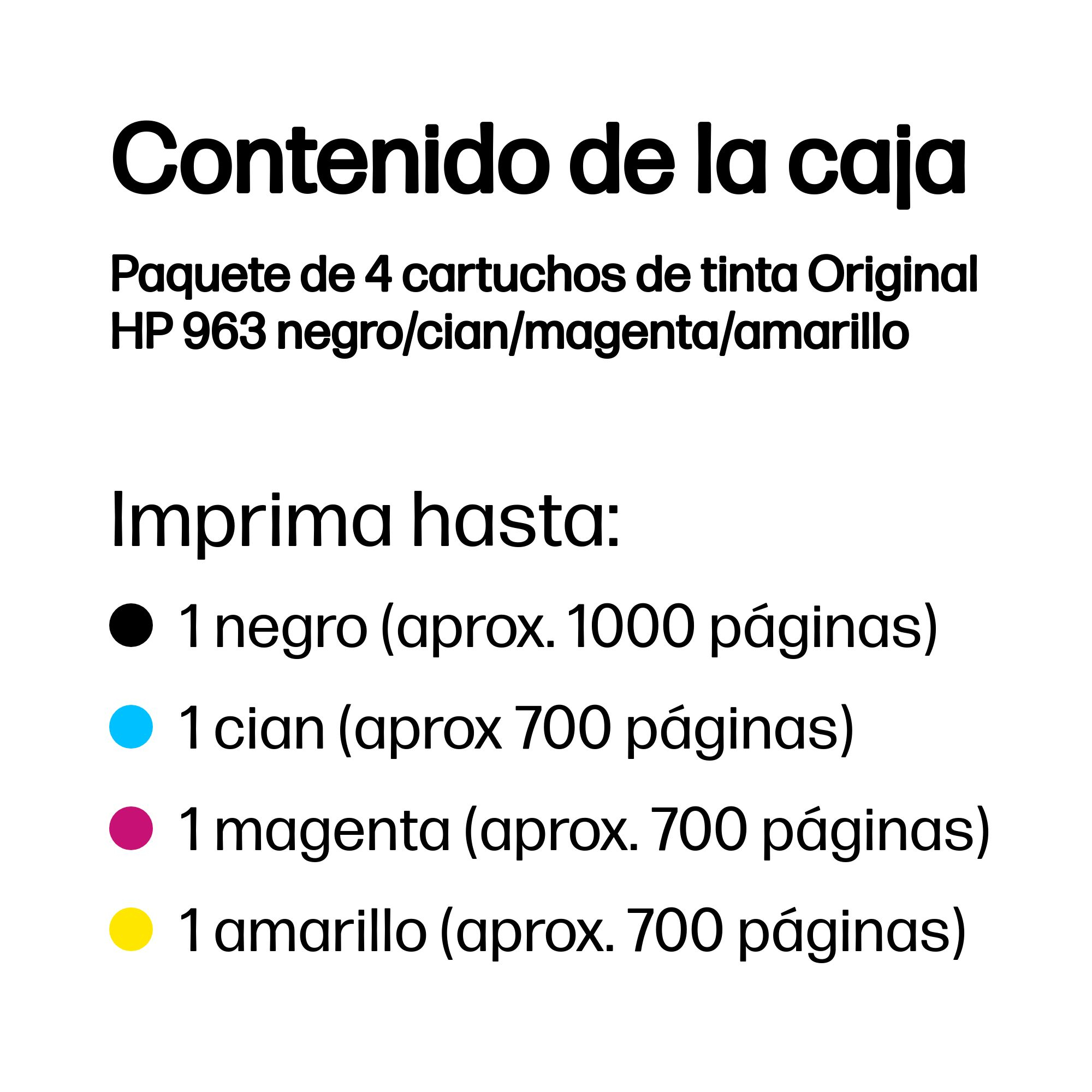 Paquete de 4 cartuchos de tinta Original HP 963 negro/cian/magenta/amarillo