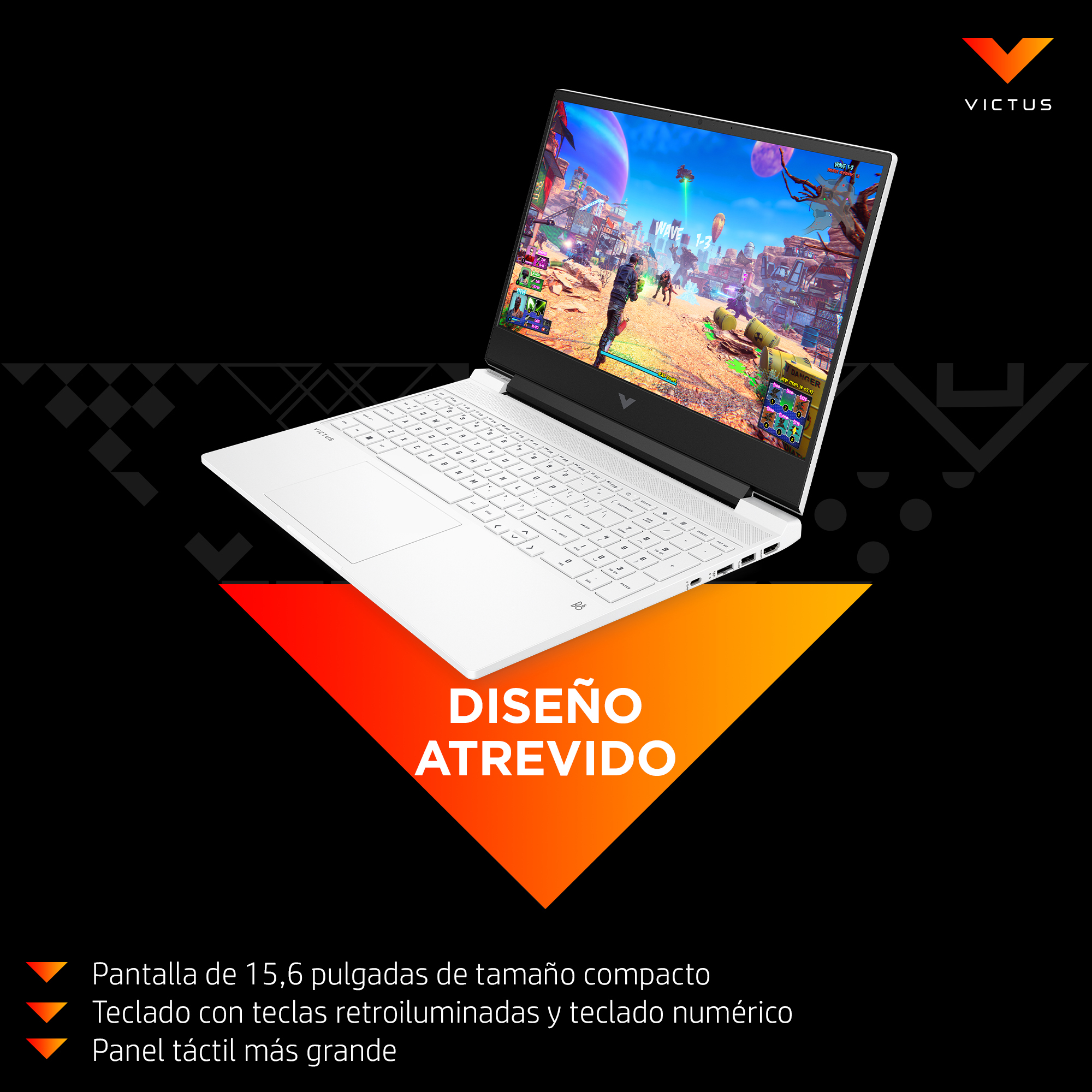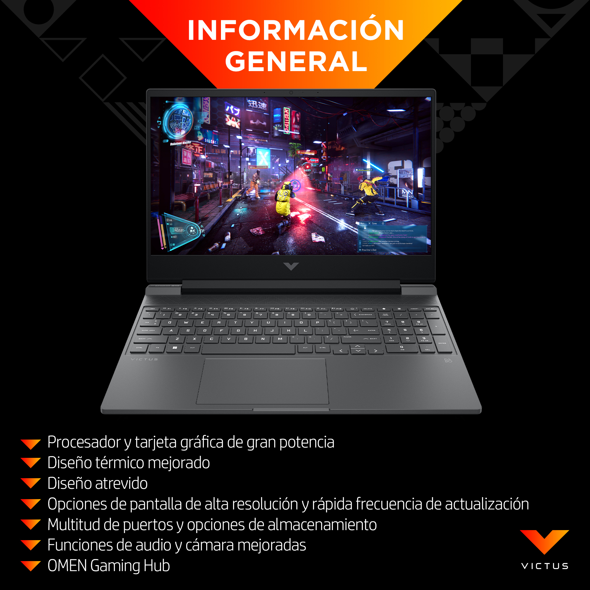 El portátil HP Victus se ha diseñado para jugar en máxima calidad. Este elegante dispositivo cuenta con un procesador Intel Core™ de 12.ª generación[1] y una tarjeta gráfica moderna. El diseño de este portátil es tan increíble como su hardware, con distintas opciones de color[2], refrigeración mejorada, un teclado gaming multifunción completo y una cámara HD con reducción temporal de ruidos.
