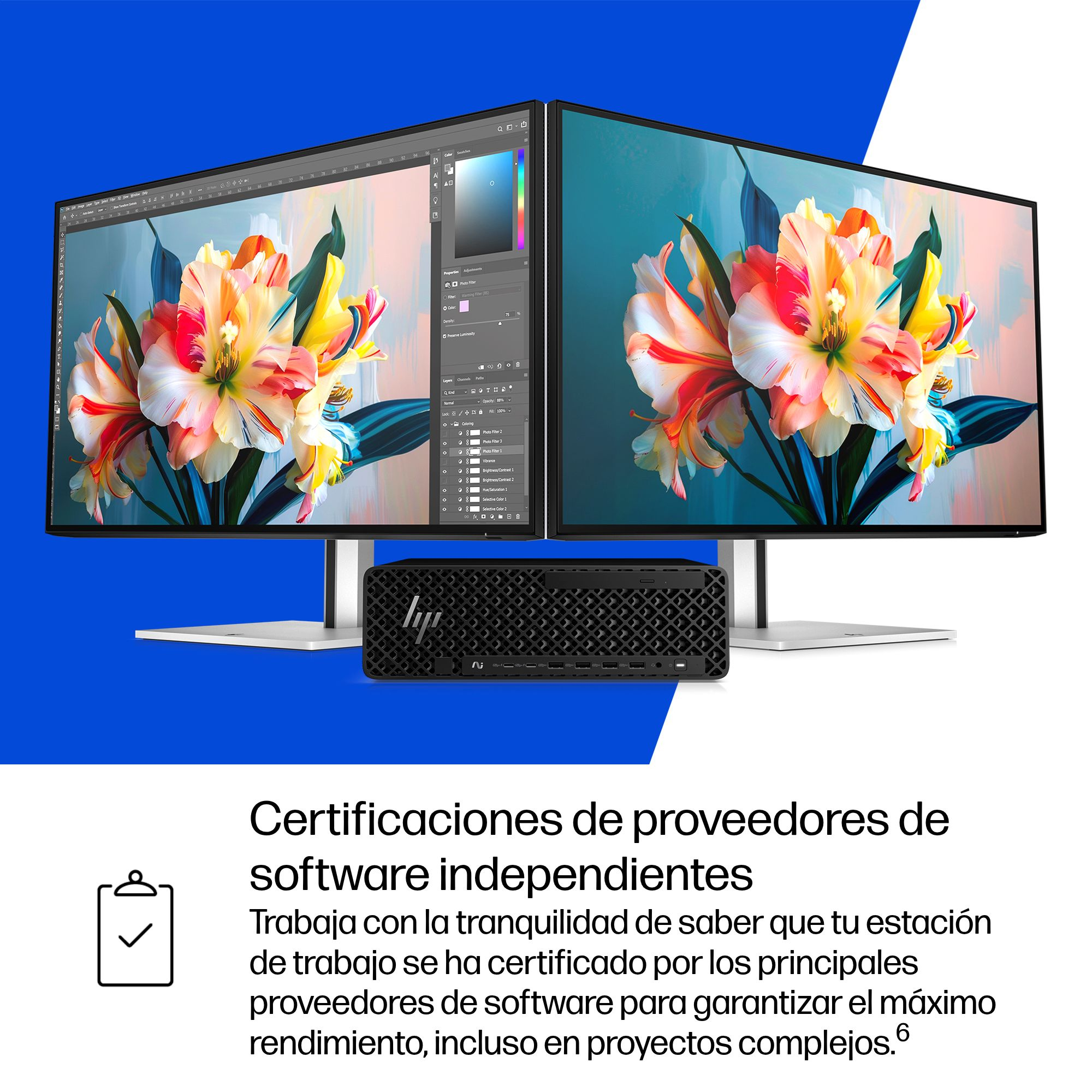 Trabaja con la tranquilidad de saber que los principales proveedores de software han certificado tu ordenador para garantizar el máximo rendimiento, incluso en proyectos complejos.