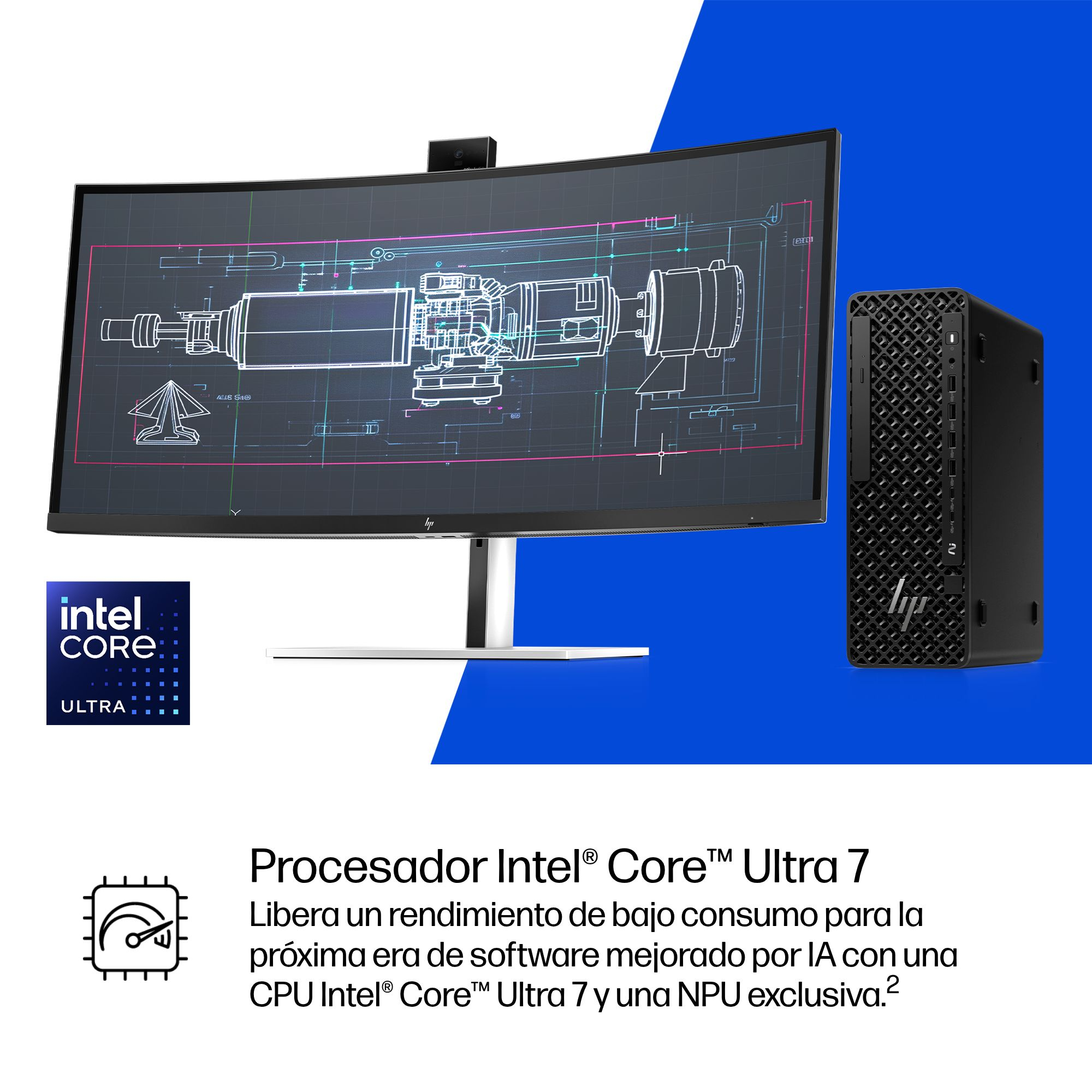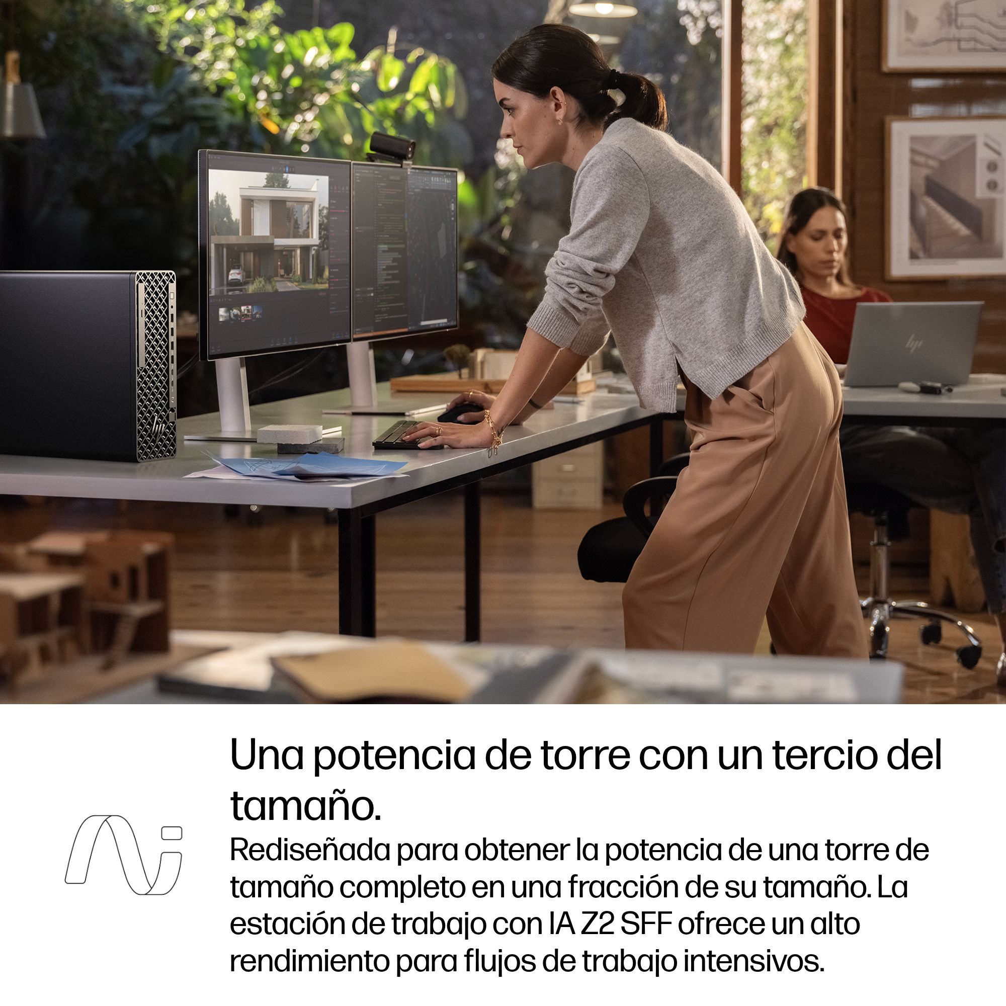Acelera los flujos de trabajo de IA con la estación de trabajo con IA SFF Z2. Itera y soluciona problemas de una forma mucho más rápida en tu dispositivo local con una potente GPU independiente que ofrece TOPS de IA mientras una NPU integrada[4] asume tareas de productividad.