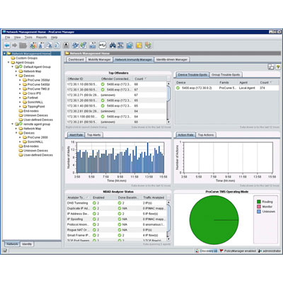 HP Network Immunity Manager es un complemento de PCM Plus que detecta y responde automáticamente a las amenazas de la red, como ataques de virus. Además, proporciona una gestión centralizada de módulos HP Threat Management Services (TMS) zl. Aprovecha las funciones de supervisión de seguridad y tráfico integradas en los conmutadores HP Networking como sFlow, Virus Throttle y tecnologías de duplicación remotas, además, ejecuta la detección de anomalías en el comportamiento de la red (NBAD) para detectar ataques. Opcionalmente, envía una duplicación del tráfico sospechoso a una aplicación remota IDS/IPS/UTM como un módulo HP TMS zl. Esta herramienta de seguridad proporciona la actividad de amenazas internas en la red para ayudar a aumentar la disponibilidad de la red.