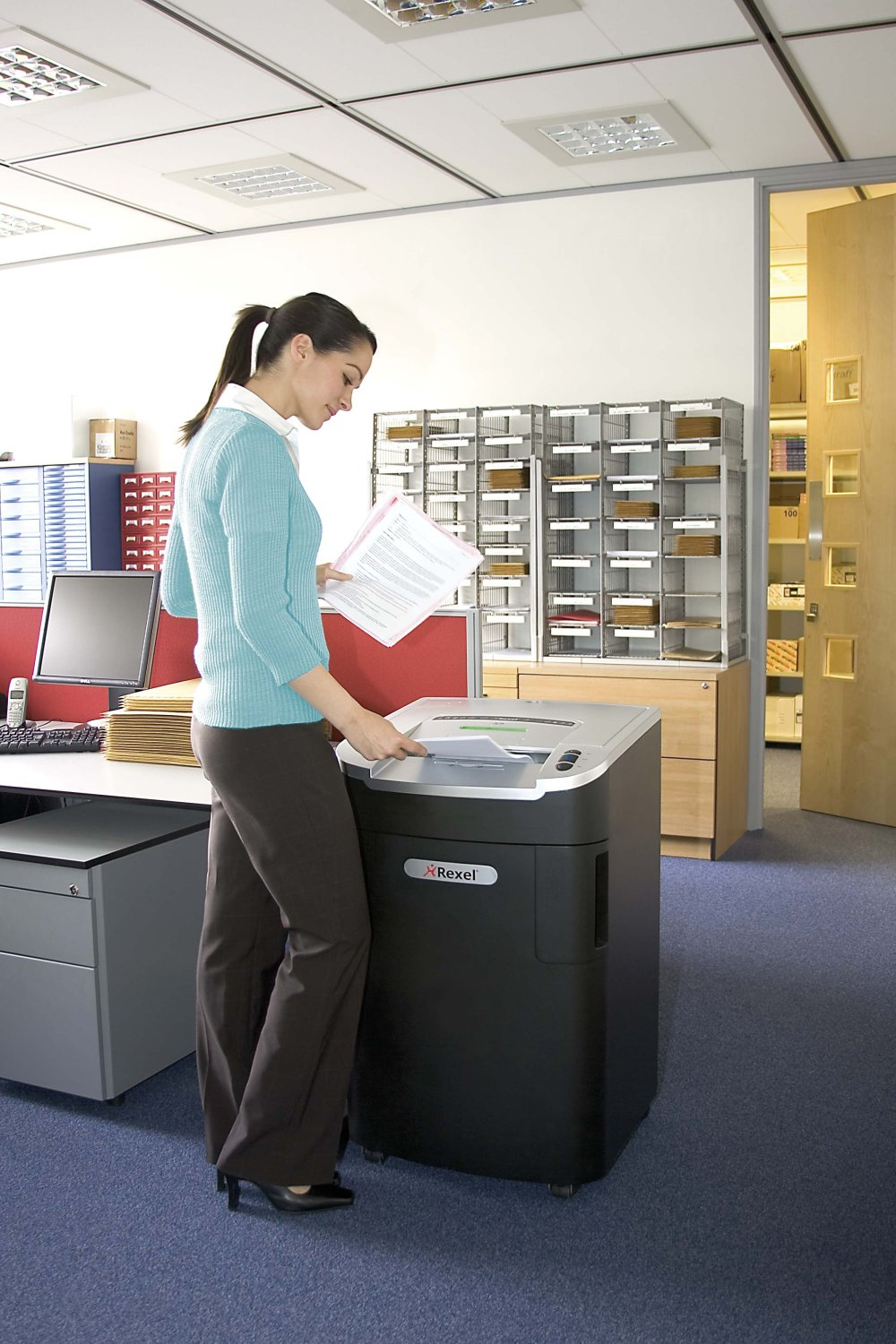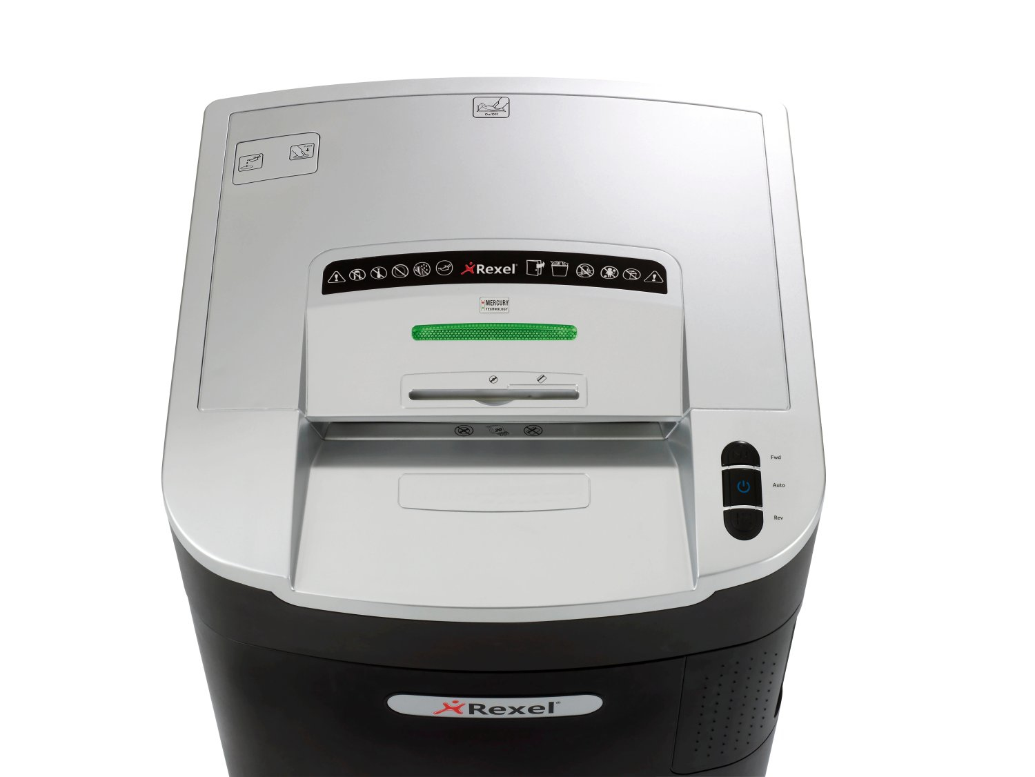 Creada para grandes oficinas con elevada producción diaria, esta avanzada destructora Mercury proporciona seguridad cotidiana mediante un corte en tiras efectivo y sencillo. Incluye la tecnología antiatascos con sensor continuo, trabaja con 32 hojas a la vez y acomoda hasta 1250 hojas destruidas en bolsas reciclables ubicadas en un bastidor extraíble para un fácil vaciado.