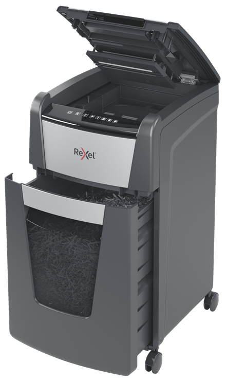 La destructora de corte en partículas Optimum AutoFeed 225X tritura automáticamente hasta 225 hojas de papel A4 (80 grs.) a la vez, en partículas P-4 (4x25 mm). Esta destructora de alimentación automática es una trituradora de oficina sofisticada, con una papelera extraíble de 60 litros. No es necesario alimentar manualmente el papel, ni quitar grapas y clips de papel primero, esta destructora de papel automática hará todo el trabajo por ti.