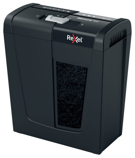 Rexel Secure S5. Tipo de triturador de papel: Corte en tiras, Tamaño de trituración de papel: 6 mm, Capacidad de la cesta: 10 L. Ancho: 288 mm, Profundidad: 164 mm, Altura: 355 mm
