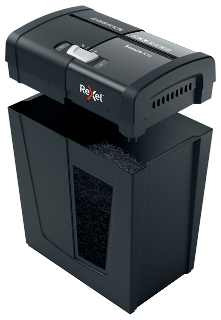 Rexel Secure X10. Tipo de triturador de papel: Corte cruzado, Tamaño de trituración de papel: 4x40 mm, Capacidad de la cesta: 18 L. Ancho: 351 mm, Profundidad: 204 mm, Altura: 355 mm