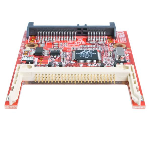 Este adaptador SATA a CF SSD dispone de un conector de alimentación SATA macho, un conector de datos SATA macho y un puerto Compact Flash que permiten al usurario conectar una tarjeta de medios del tipo Compact Flash a un ordenador portátil en lugar de un disco duro serial ATA.Una solución SSD rápida y sencilla, el adaptador CF a SATA permite utilizar medios Compact Flash, Compact Flash 2, o Micro Drive en un ordenador portátil como un disco duro de autoarranque y no requiere de software ni controladores de instalación.