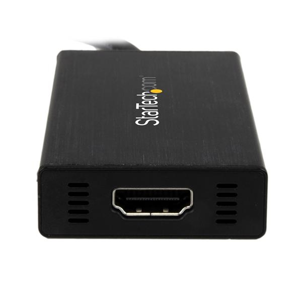 El adaptador USB a HDMI funciona como una tarjeta gráfica externa con soporte para audio, ya que ofrece una manera práctica de añadir capacidad multimonitor a un PC de sobremesa o portátil equipado con USB 3.0. Al aprovechar la interfaz USB 3.0 de alto ancho de banda (5 Gbps), el adaptador transmite un contenido uniforme de alta definición a la pantalla o el proyector HDMI. Es posible utilizar el adaptador para duplicar el escritorio del PC, y mostrar la misma imagen en cada pantalla, o bien para ampliar el escritorio, con el fin de doblar el espacio de trabajo y aumentar la productividad.