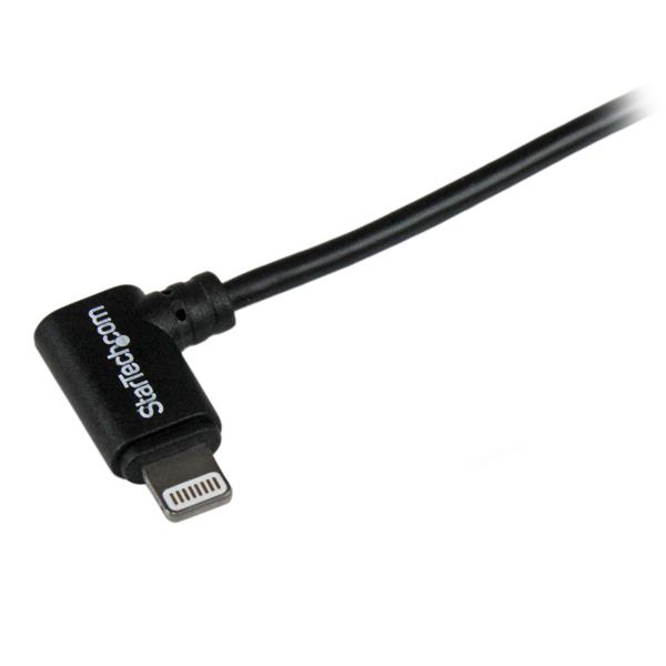 StarTech.com Cable Lightning Acodado a la Derecha de 1m Cargador Sincronizador USB 2.0 para Apple iPod iPhone iPad - Negro
