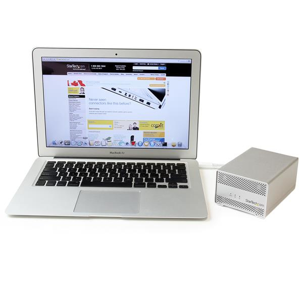 Actualmente las transferencias más rápidas de datos hacia o desde unidades externas, a través de una conexión Thunderbolt. Con velocidades de transferencia de datos de hasta 10 Gbps, Thunderbolt tiene un rendimiento 100% más rápido que USB 3.0 (5 Gbps), y 60% más rápido que eSATA (6 Gbps). El rendimiento sin precedentes que ofrece Thunderbolt convierte esta caja en solución ideal para la edición de vídeos y fotografías.