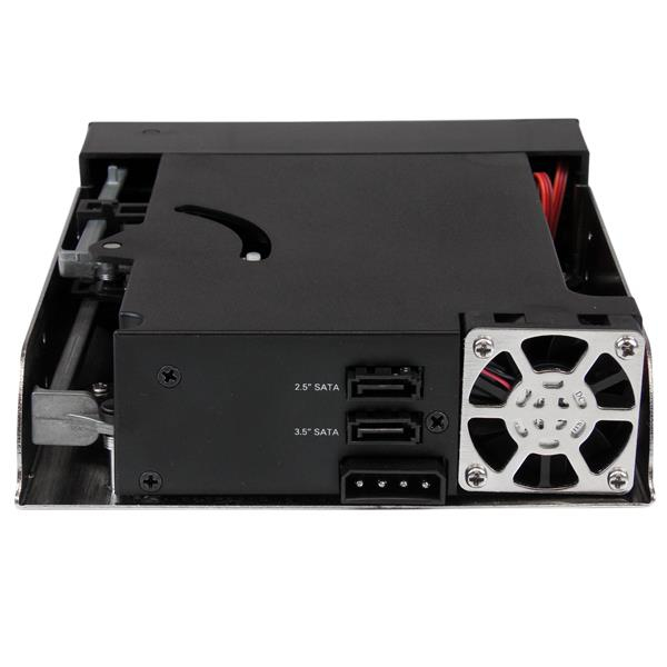 Para mayor versatilidad, el backplane es compatible con las interfaces SATA y SAS, lo que resulta ideal para la integración de sistemas empresariales. Además, para evitar una falla en la unidad, la bahía ofrece excelente disipación del calor mediante un ventilador integrado y una caja de aluminio ranurada.