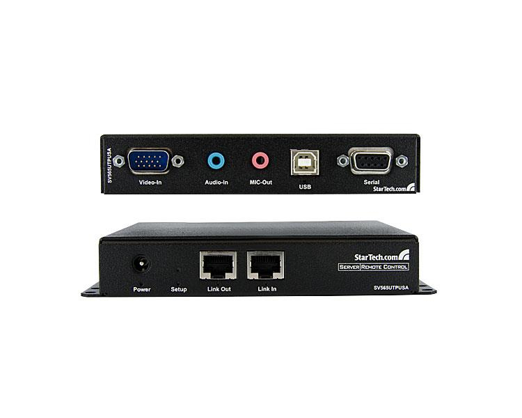 El Extensor de Consola KVM USB VGA con Serial y Audio a través de UTP Cat5 (1000 pies), SV565USAGB permite controlar un servidor, uno o múltiples ordenadores (conectados a un Conmutador KVM) a través de cable de red UTP Cat5 o Cat6 , a distancias de hasta 1000 pies (333m) mediante una conexión remota a un servidor bloqueado (seguro).