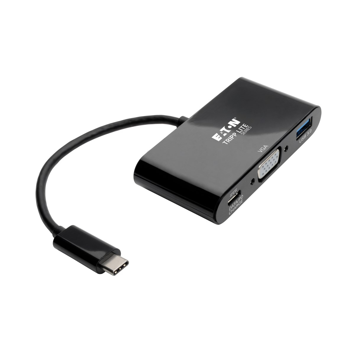 Tripp Lite Adaptador USB-C a VGA con Puerto USB-A y Carga PD, Negro