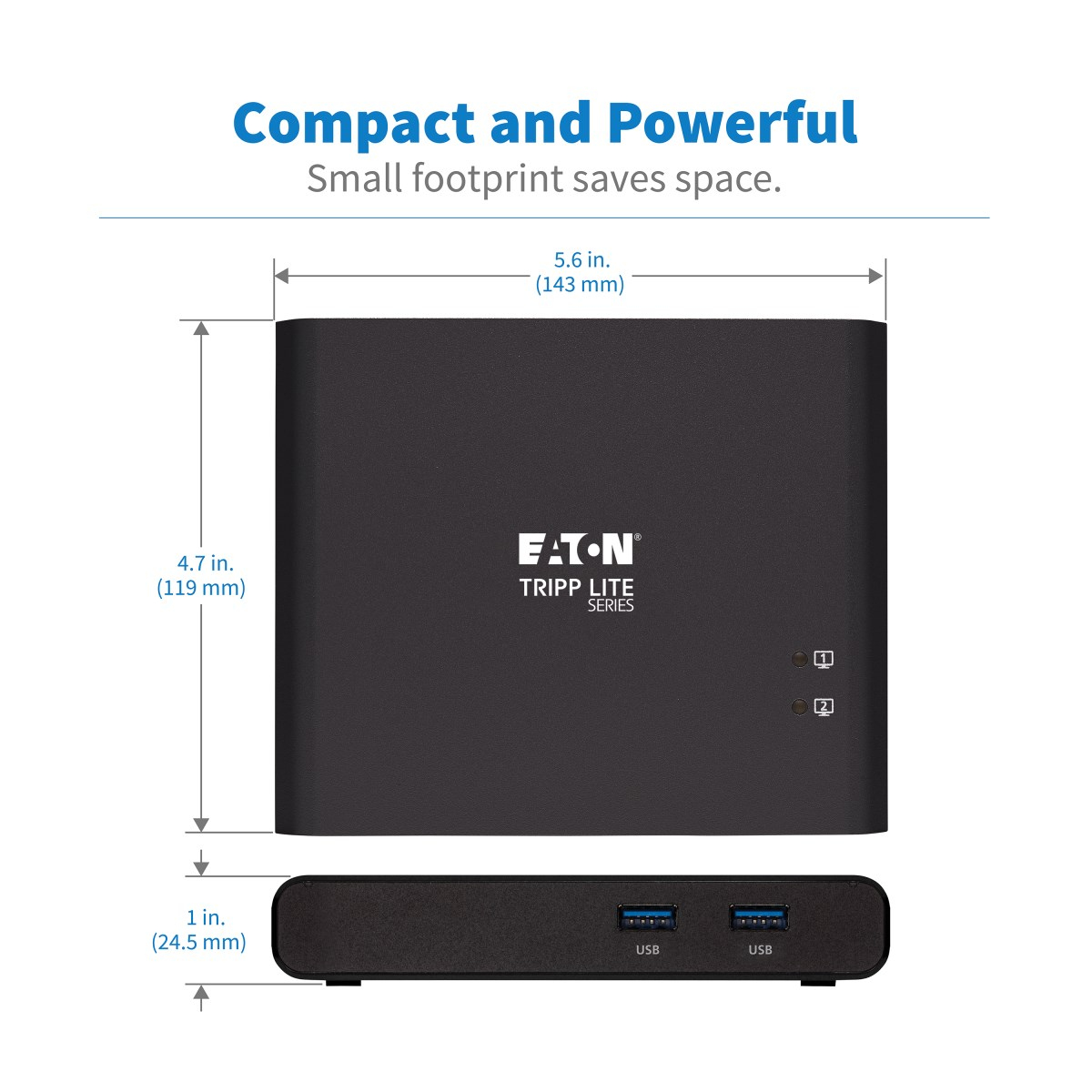 Tripp Lite B003-HC2-DOCK1 Estación de Conexión KVM USB C de 2 Puertos - 4K HDMI, USB 3.2 Gen 1, Hub USB-A, Selector Remoto, Carga PD de 85W, Negro