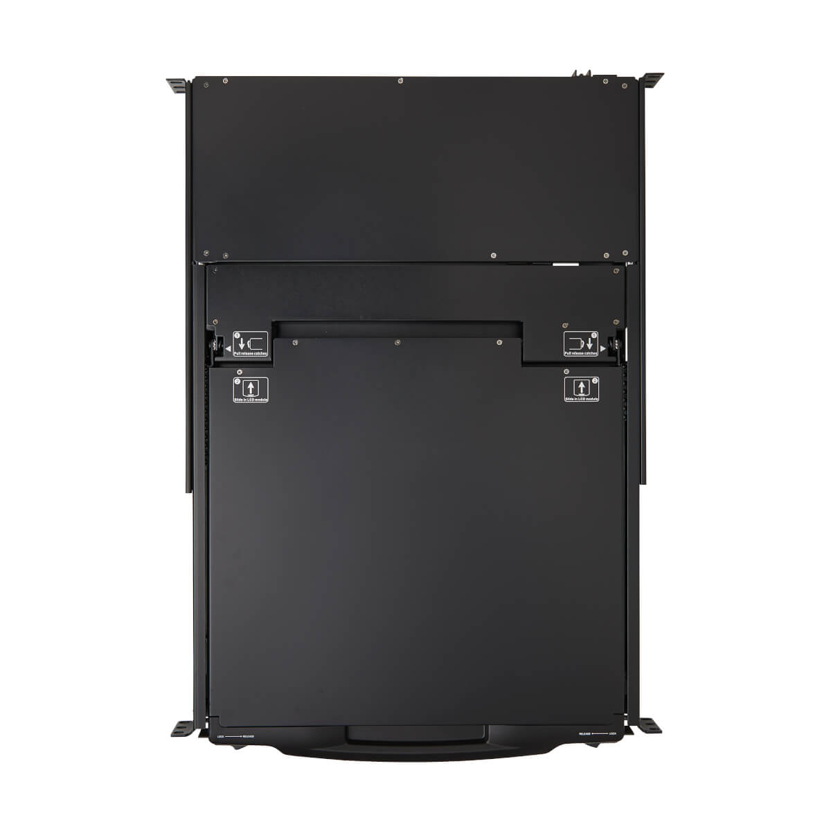 ● El diseño de doble riel permite que el LCD permanezca abierto mientras el teclado y panel táctil se deslizan en el rack
