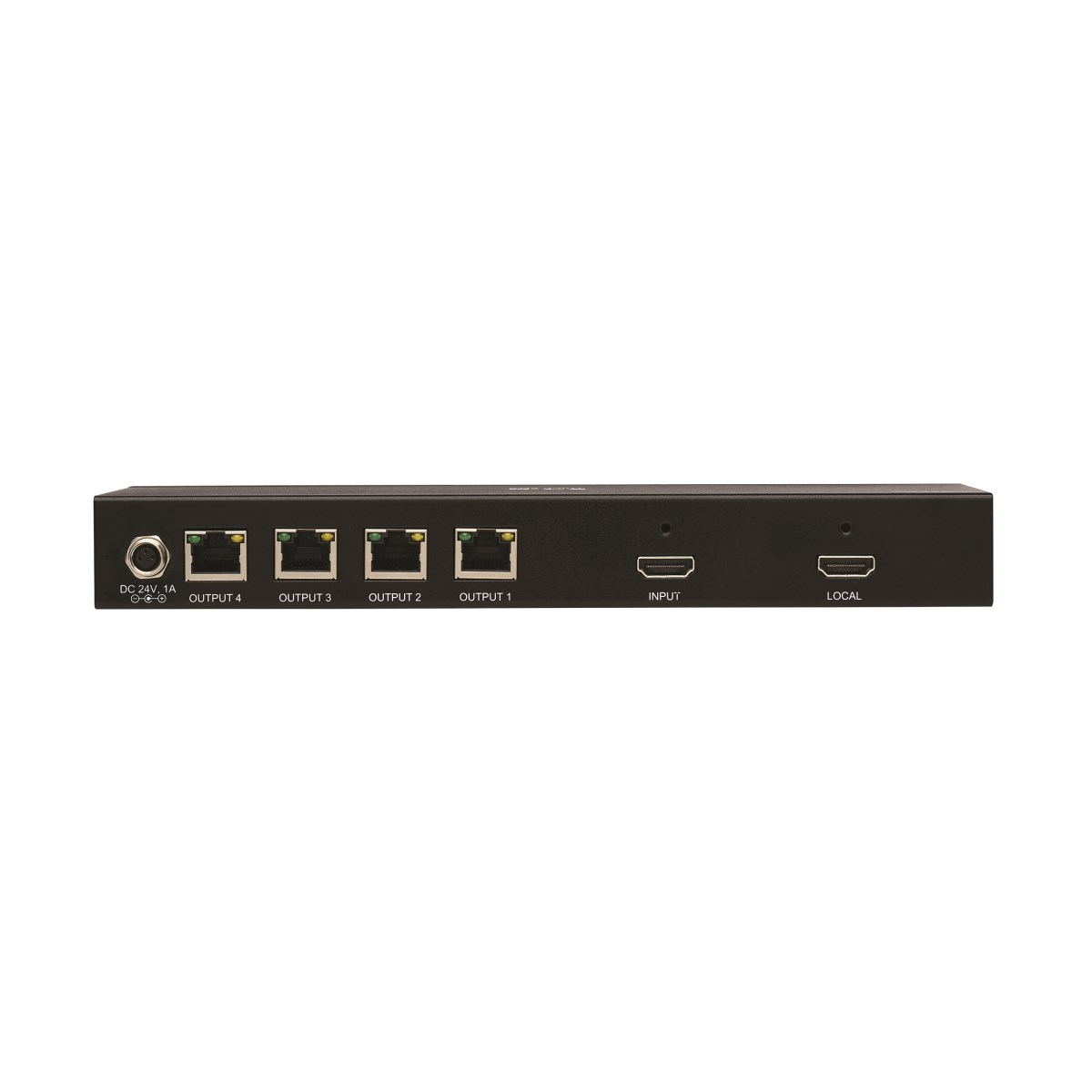 Tripp Lite B127A-004-BH. Tipo de puerto de vídeo: HDMI, Salida de vídeo: 4x RJ-45. Máxima resolución: 3840 x 2160 Pixeles, Color del producto: Negro, Material de la carcasa: Metal. Tipos de cable soportados: Cat6. Voltaje de entrada AC: 100 - 240 V, Frecuencia de entrada AC: 50 - 60 Hz, Corriente de entrada: 0.6 A. Ancho: 235 mm, Profundidad: 100 mm, Altura: 29,7 mm