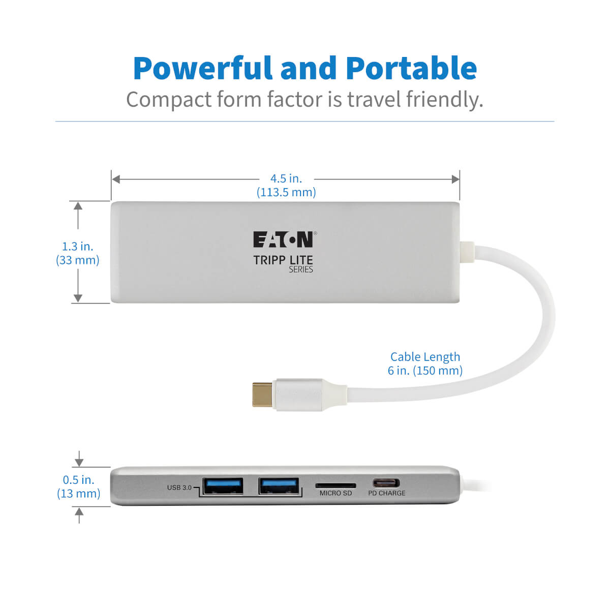 Tripp Lite Estación de Conexión USB-C, 4K @ 30 Hz, HDMI, Thunderbolt 3, Carga PD, Micro SD – Plata