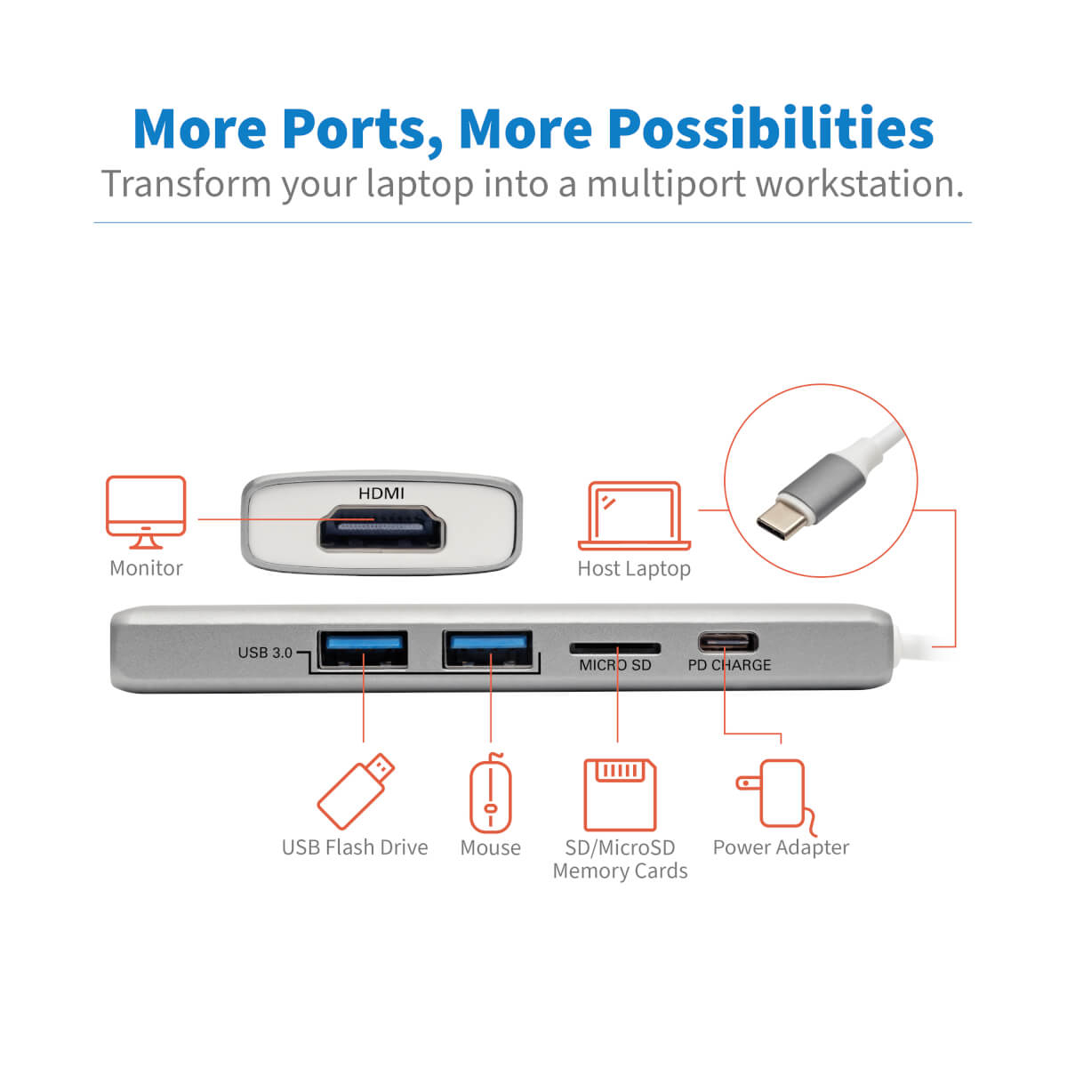 La Estación de Conexiones USB-C Convierte el Puerto USB-C o Thunderbolt 3 de su Dispositivo en una Estación de Trabajo Multipuerto
