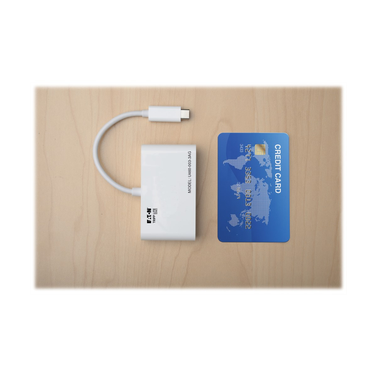 Tripp Lite Hub Portatil de 3 Puertos USB 3.1 Gen 1, USB-C a (x3) USB-A, con Puerto Gigabit Ethernet, Compatible con Thunderbolt™ 3