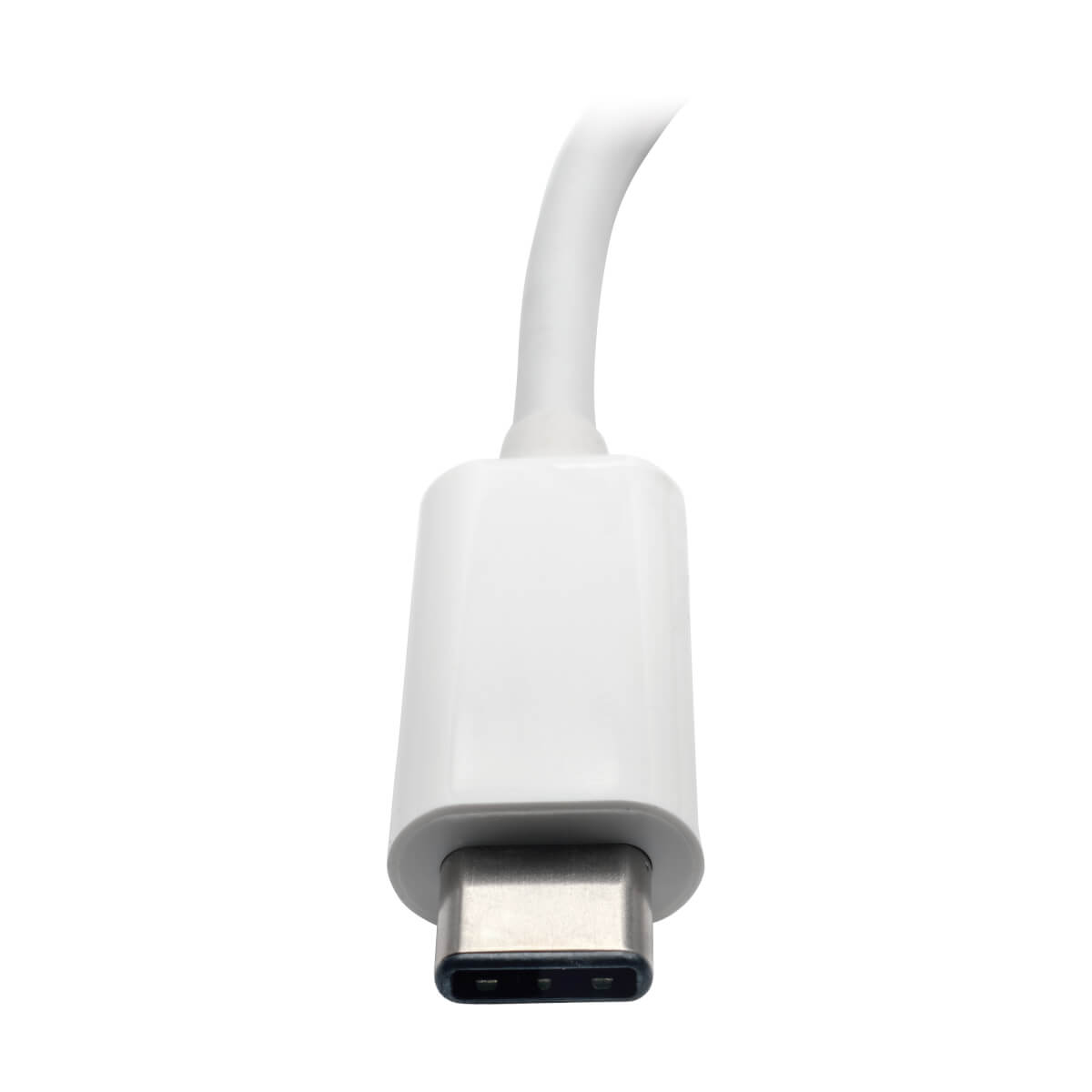 El cable USB-C incorporado del Hub Portatil de 3 Puertos USB 3.1 Gen 1 U460-003-3AG se conecta al puerto USB-C de su tableta, laptop o computadora para proporcionarle tres puertos externos USB-A y un puerto RJ45 Gigabit Ethernet. Este hub no solo le permite velocidades de red 10/100/1000 Mbps Ethernet reales sin la molestia y el gasto de instalar una tarjeta Ethernet interna en su dispositivo, pero le permite conectar una amplia gama de dispositivos USB, como unidades de memoria, discos duros externos, reproductores de DVD, reproductores de MP3 y camaras digitales.