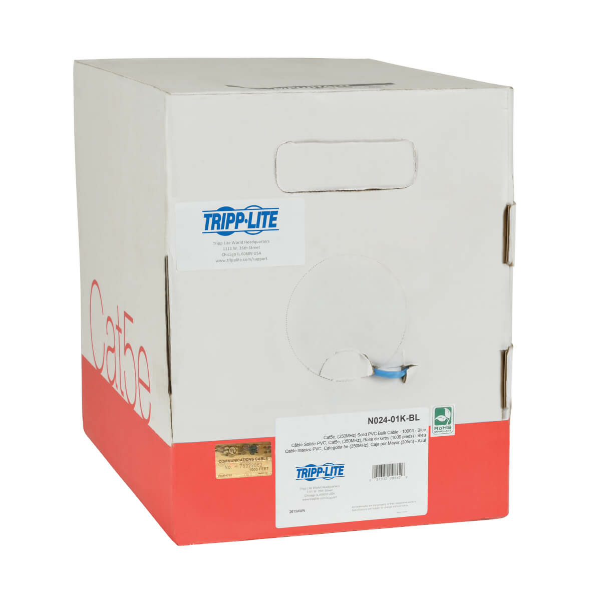 Tripp Lite N024-01K-BL. Longitud de cable: 304,8 m, Cable estándar: Cat5e, Blindaje de cable: U/UTP (UTP), Velocidad de transferencia de datos: 1000 Mbit/s, Color del producto: Azul