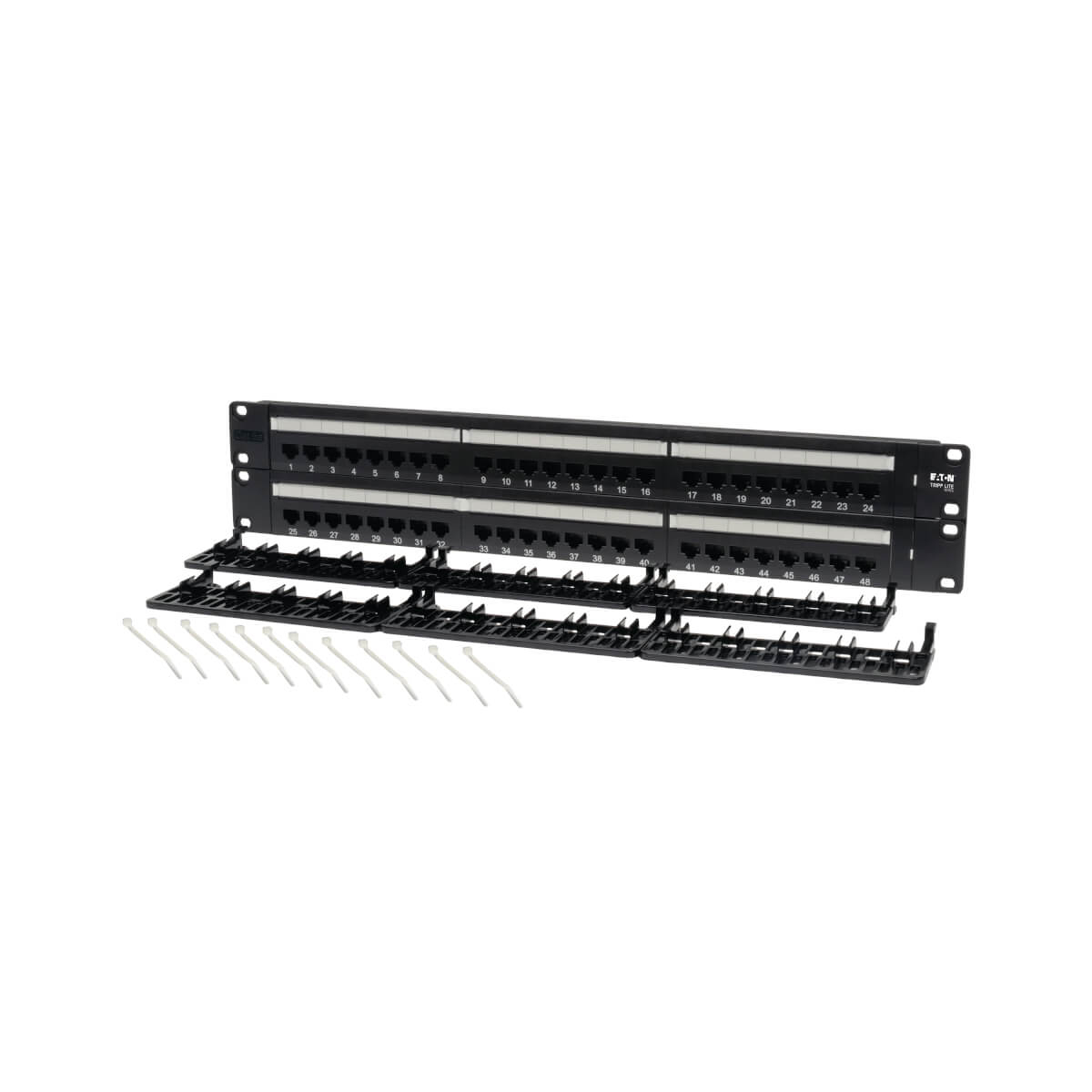 Los paneles de conexión mejorados categoría 5 de Tripp Lite le ofrecen toda la funcionalidad y compatibilidad con cualquier marca. Cada panel viene con terminación tipo 110, cumpliendo y excediendo las especificaciones de herrajes de conexión EIA/TIA TSB-40 Cat5e. Colores codificados para instalaciones EIA/TIA 568A y 568B. 48 puertos aseguran un amplio rango de opciones conecte y use. La numeración nítida en el frente y la parte posterior de cada panel le proporciona un modo rápido y fácil para identificar trayectorias de cables y el diseño de panel de 19 pulgadas de alta densidad le ahorra valioso espacio en el rack. Tripp Lite garantiza de por vida que este producto no tiene defectos de materiales ni de mano de obra.