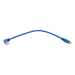 Este cable patch Cat6 en ángulo a la derecha cuenta con un forro de PVC azul y terminales azules moldeadas. El código de colores permite fácil y rápida identificación en un rack o estación de trabajo abarrotada y ayuda a evitar que el cable se desconecte en forma inadvertida.