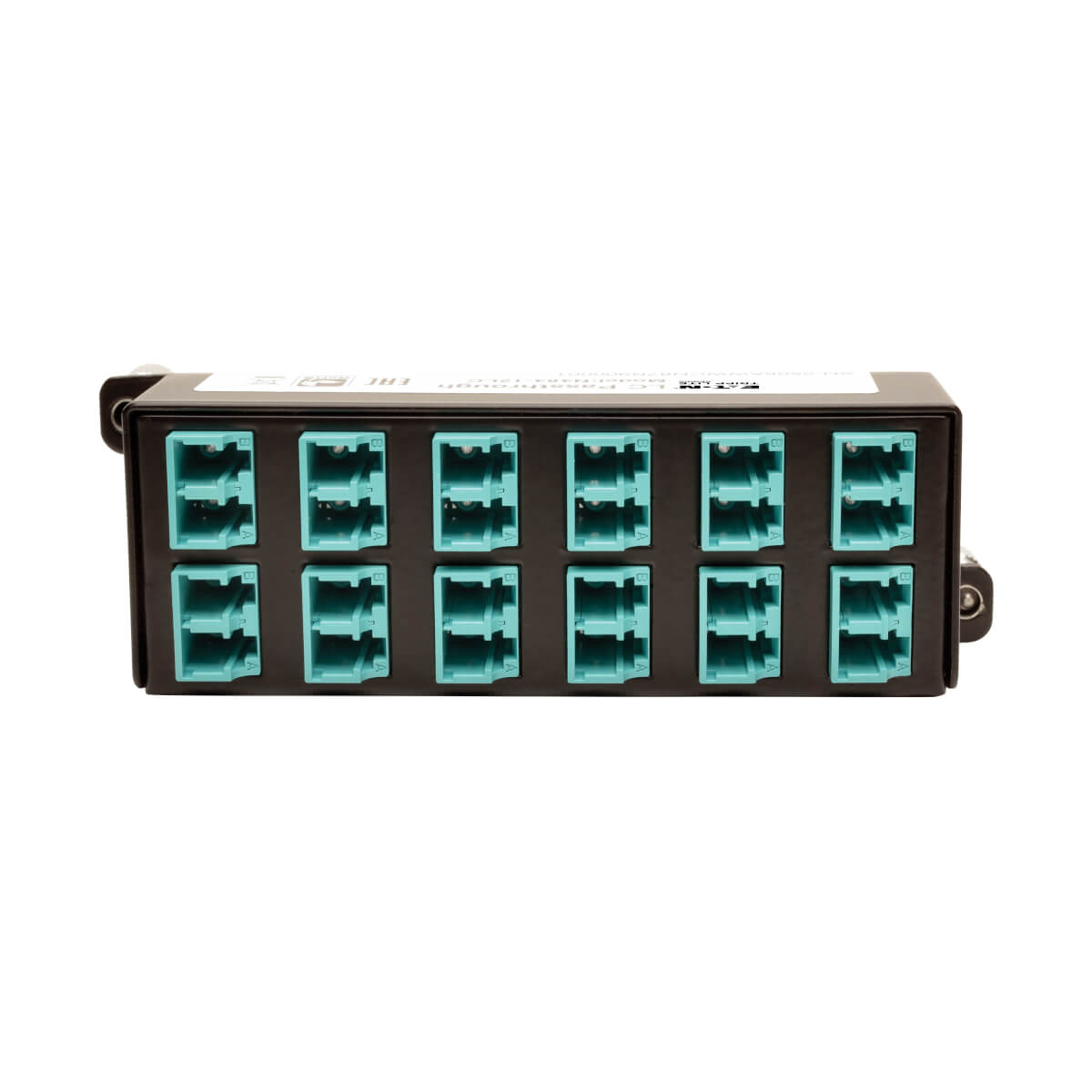 Tripp Lite N484-12LC. Tipo de interfaz ethernet: 10 Gigabit Ethernet, Rango máximo de transferencia de datos: 10000 Mbit/s, Conector: LC. Color del producto: Negro, Material: Acero. Certificados de conformidad: RoHS, Certificación: REACH. Ancho: 88,9 mm, Altura: 30,5 mm, Profundidad: 119,4 mm. Ancho del paquete: 130 mm, Profundidad del paquete: 37,1 mm, Altura del paquete: 59,9 mm