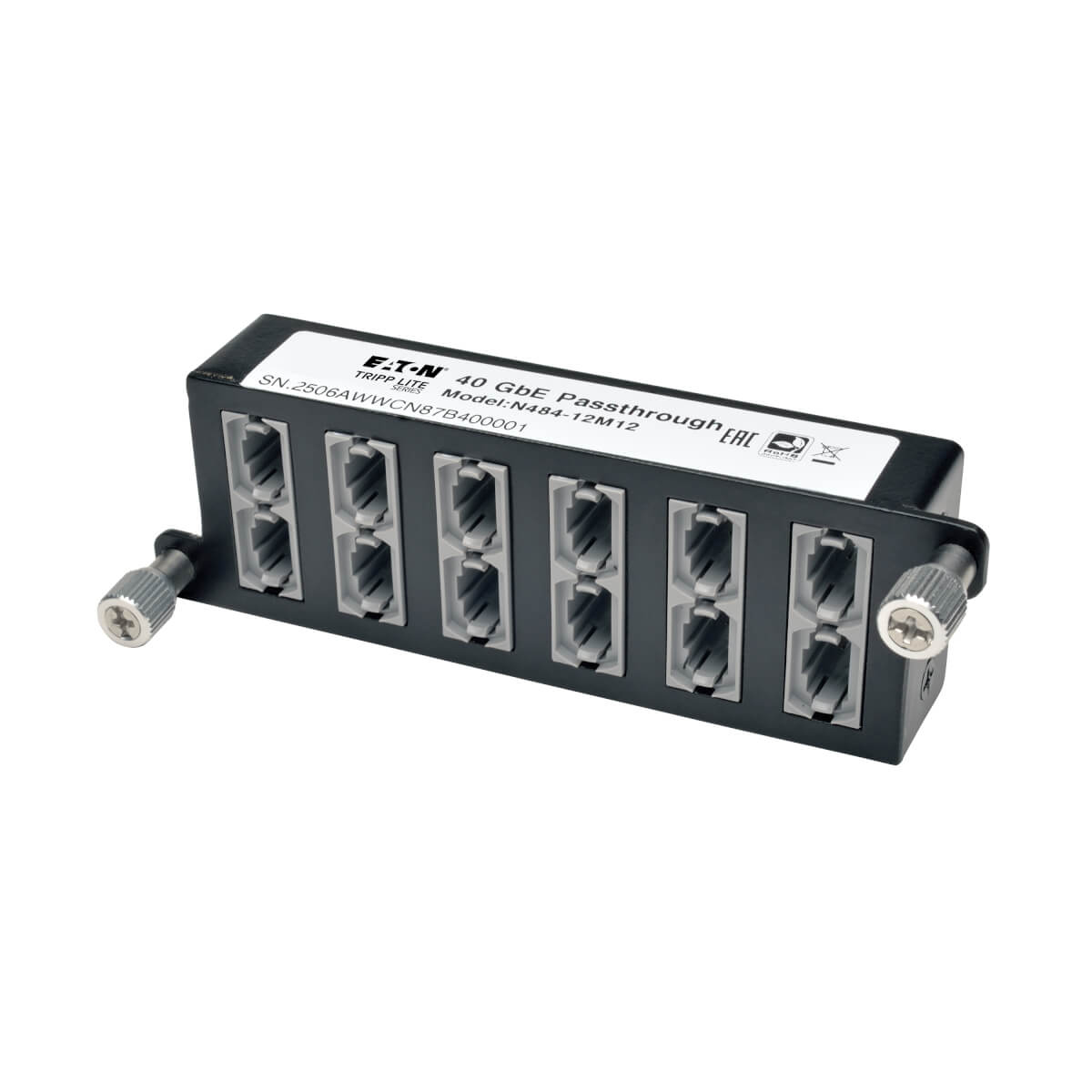 Tripp Lite N484-12M12. Estándares de red: IEEE 802.3ae, Tipo de interfaz ethernet: 40 Gigabit Ethernet, Rango máximo de transferencia de datos: 40000 Mbit/s. Color del producto: Negro, Material: Acero. Certificados de conformidad: RoHS, Certificación: REACH. Ancho: 130 mm, Altura: 30,5 mm, Profundidad: 119,4 mm. Ancho del paquete: 200,7 mm, Profundidad del paquete: 37,1 mm, Altura del paquete: 59,9 mm