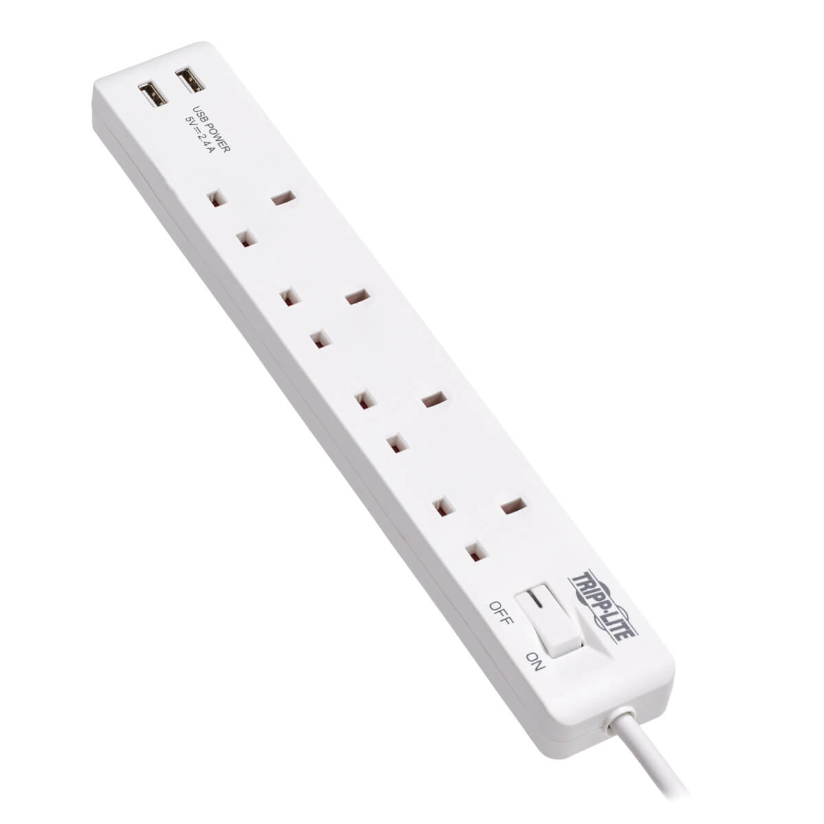 Tripp Lite PS4B18USBW, 1,8 m, Interior, Tipo G (BS 1363), Tipo G, Blanco, CE, Reach