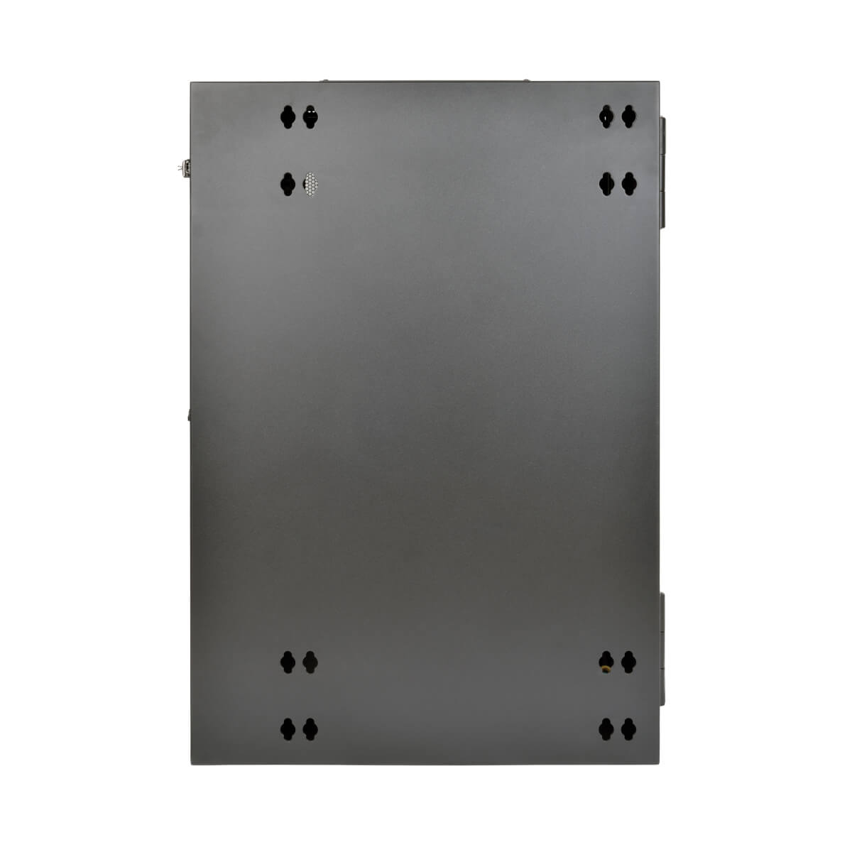 El gabinete se puede girar a una distancia adecuada de la pared, sujetado por una bisagra resistente, lo que permite un fácil acceso al equipo y al cableado por la puerta trasera durante la instalación y el mantenimiento. Las puertas y los paneles laterales se cierran con cerradura para evitar daños, manipulación indebida o robos. Los paneles del frente, arriba, abajo y laterales extraíbles tienen ventilación, lo que permite que fluya aire libremente para mantener al equipo fresco. Las puertas reversibles pueden abrirse hacia la izquierda o la derecha haciendo girar el gabinete 180° antes de instalarlo. Convenientes puertos ubicados en la parte superior e inferior permiten un fácil enrutamiento de los cables.
