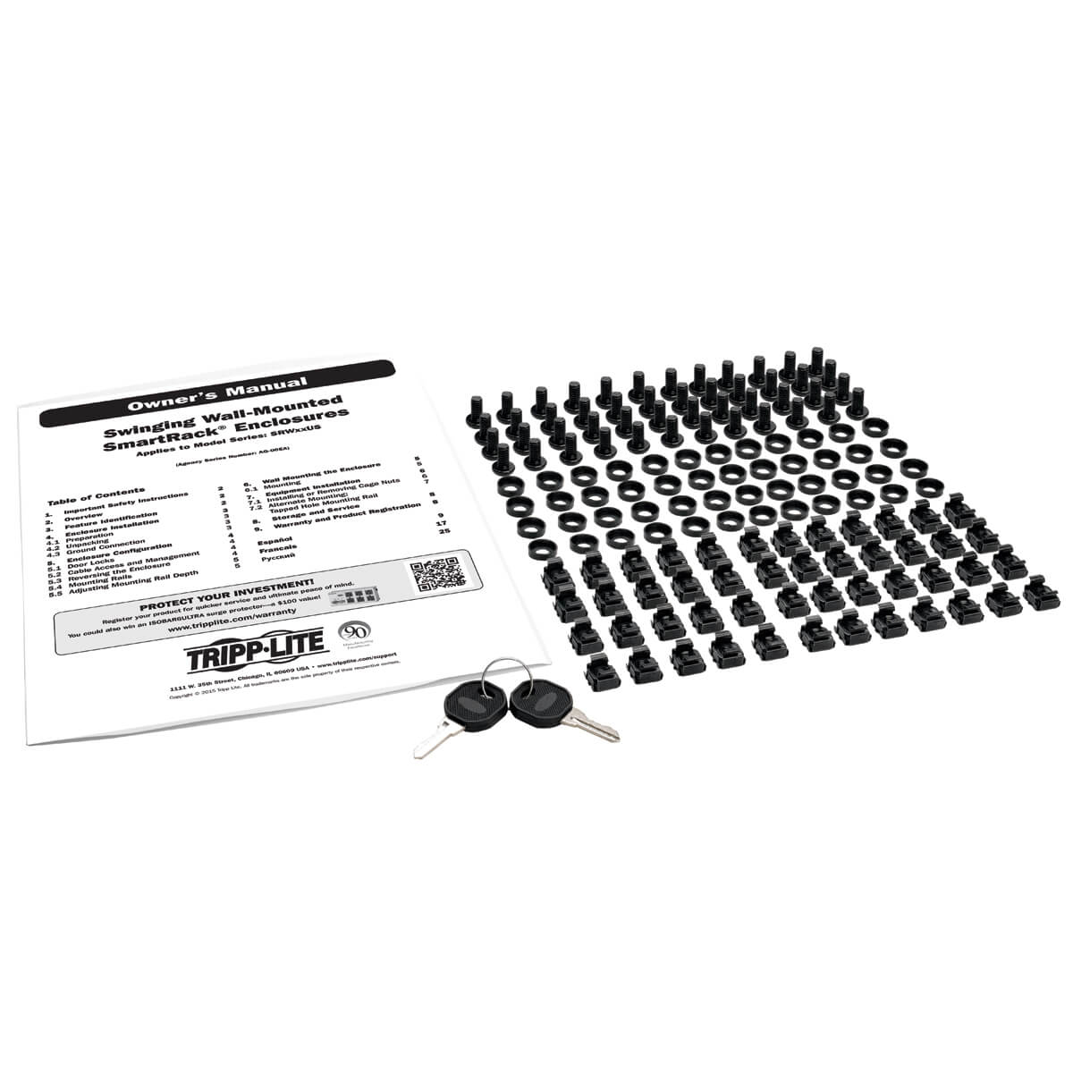 ● Se instala en la pared o rueda por el piso con el juego de ruedas SRCASTER opcional de Tripp Lite