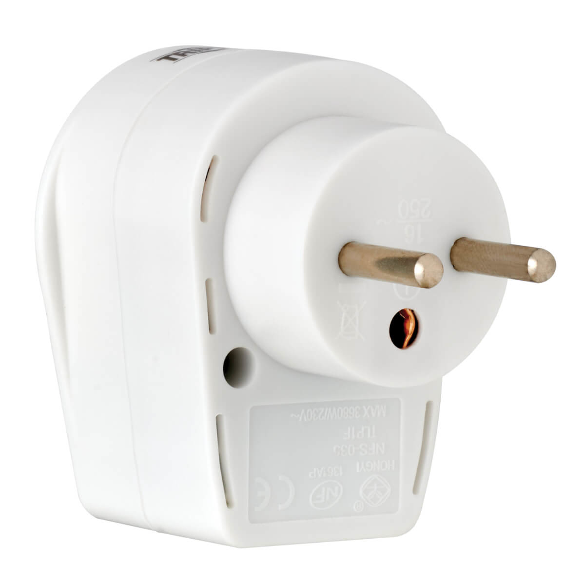 Tripp Lite TLP1F. Índice de aumento de energía: 250 J, Cantidad de salidas AC: 1 salidas AC, Tipo de salida AC: Tipo E. Conector: Tipo E. Color del producto: Blanco, Material: Plástico, País de origen: China. Peso: 50 g, Ancho: 68,6 mm, Profundidad: 73,7 mm. Ancho del paquete: 109,2 mm, Profundidad del paquete: 76,2 mm, Altura del paquete: 106,7 mm