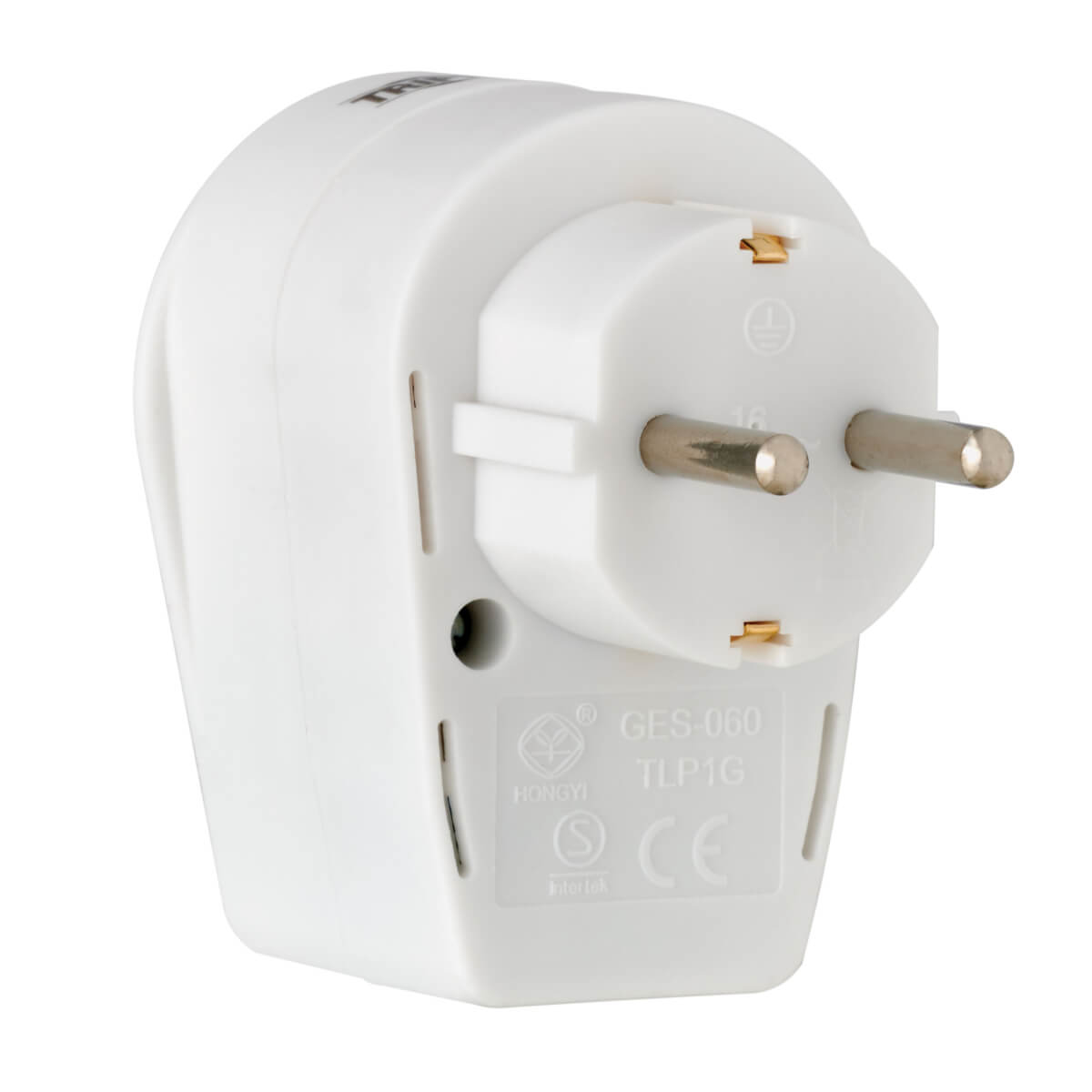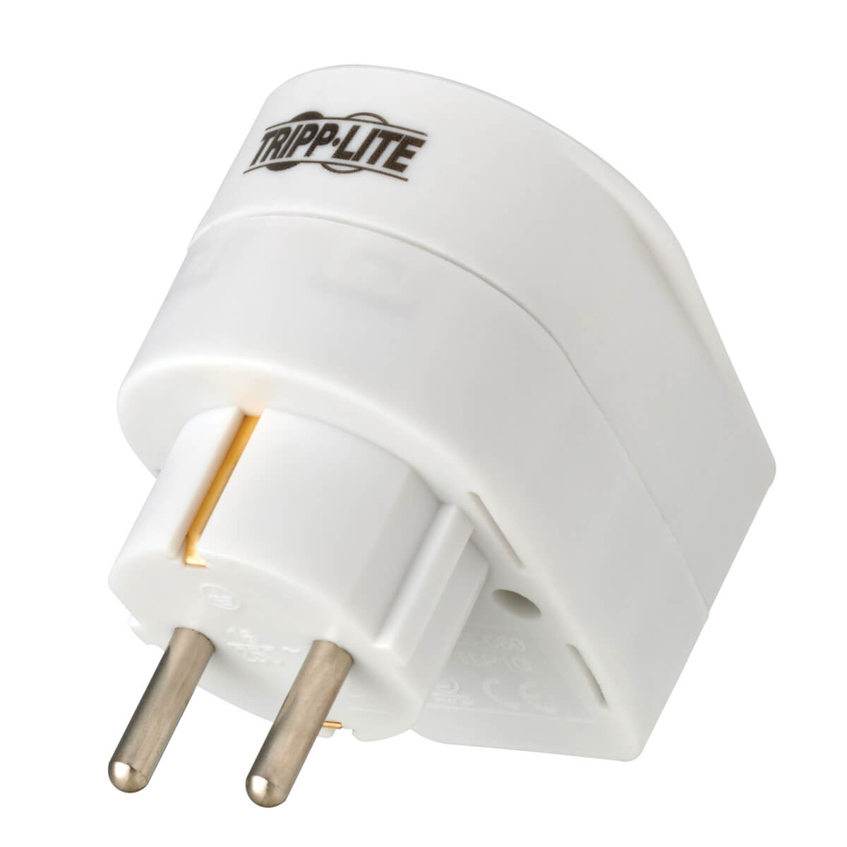 Tripp Lite TLP1G. Índice de aumento de energía: 250 J, Cantidad de salidas AC: 1 salidas AC, Tipo de salida AC: Tipo F. Conector: Tipo F (Schuko). Color del producto: Blanco, Material: Plástico, País de origen: China. Peso: 50 g, Ancho: 68,6 mm, Profundidad: 73,7 mm. Certificación: CE, REACH