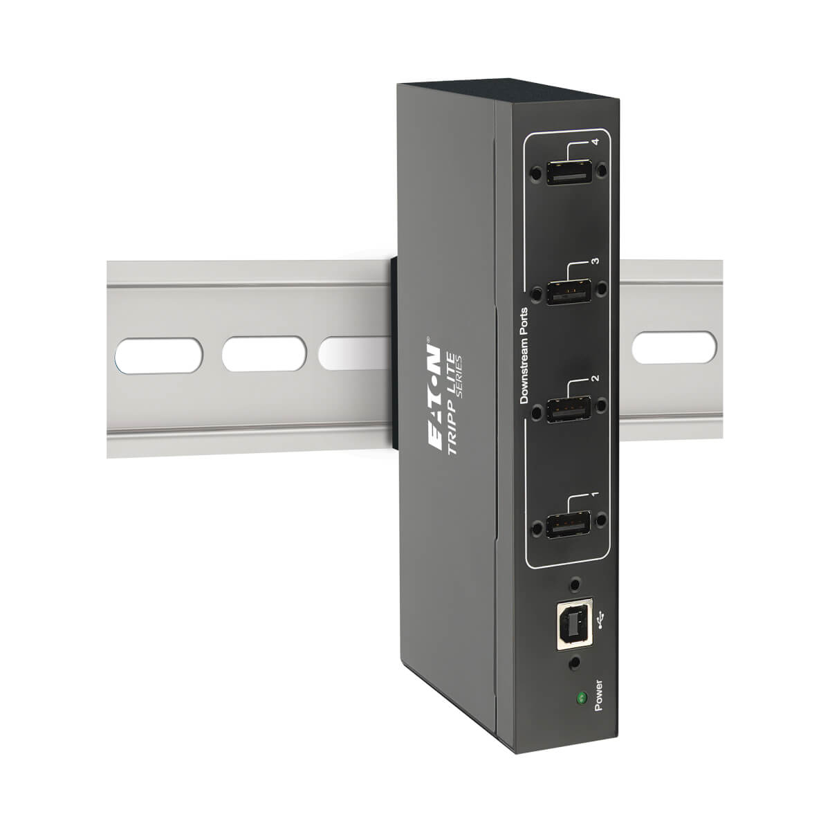 Tripp Lite U223-004-IND-1. Interfaz de host: USB 2.0 Type-B, Interfaces de concentradores: USB 2.0. Velocidad de transferencia de datos: 480 Mbit/s, Color del producto: Negro, País de origen: Malasia. Ancho: 80 mm, Profundidad: 158 mm, Altura: 32 mm. Ancho del paquete: 175 mm, Profundidad del paquete: 110 mm, Altura del paquete: 65 mm. Cables incluidos: USB tipo A a USB tipo B
