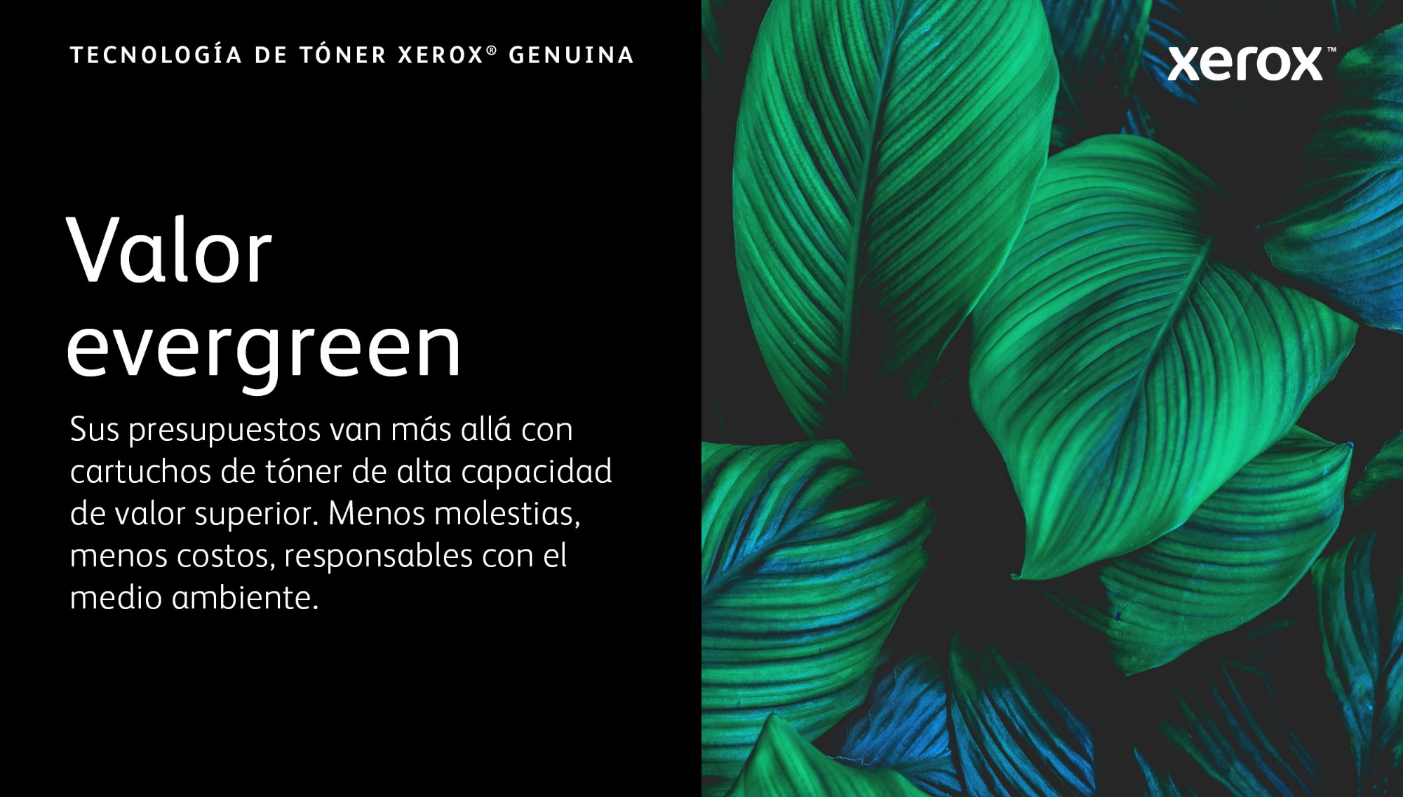 Resultados sobresalientes, confiables, energéticamente eficientes y vibrantes. Tranquilidad total al combinar siempre impresoras Xerox y tóner genuino Xerox.